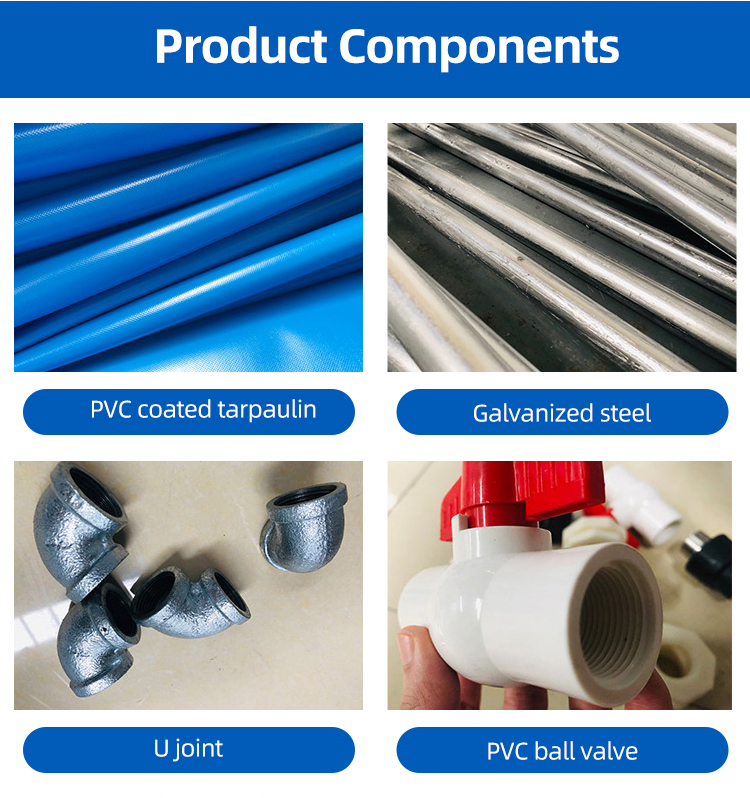 The raw material of our square fish pond or rectangular fish pond is made of PVC or polyvinyl chloride, which is called PVC mesh tarpaulin. Features of tarpaulin: soft density, better abrasion resistance than other raw materials, and feel thinner to the touch. It has no smell. The best reason is that it's easy to set up and uninstall. The function is waterproof. Not flammable. Mildew and heat resistant.