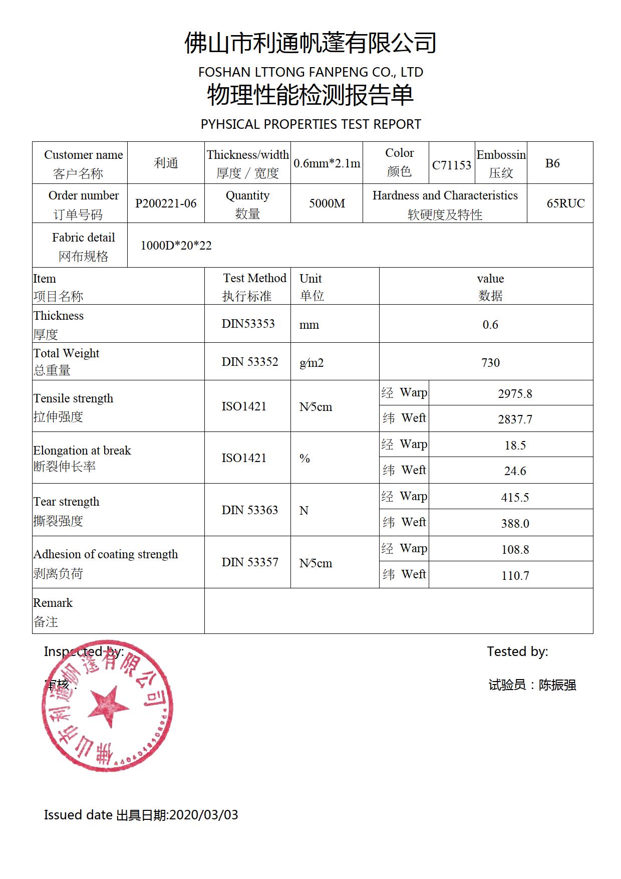 | Yarn count: | 1000*1000D | Packaging Details: | Packaging in PVC tarpaulin and canvas tarpaulin, green woven bag. |