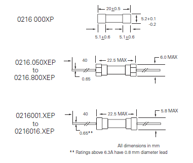Littelfuse, Axial Lead & Box Fuses, 5×20 mm > Quick Action > 216 Series, Taiwan Design