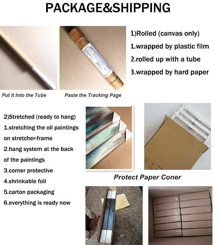 | brand: | horn net | Packaging Details: | 1. The paintings of gallery packaging are packed in carton. 2. Framed paintings are packed in MDF boxes or wooden boxes. 3. Without frame: Roll up with tube, fill and wrap with bubble wrap. 4. With Frame: Each piece has 4 corner protectors and shrink wrap. |