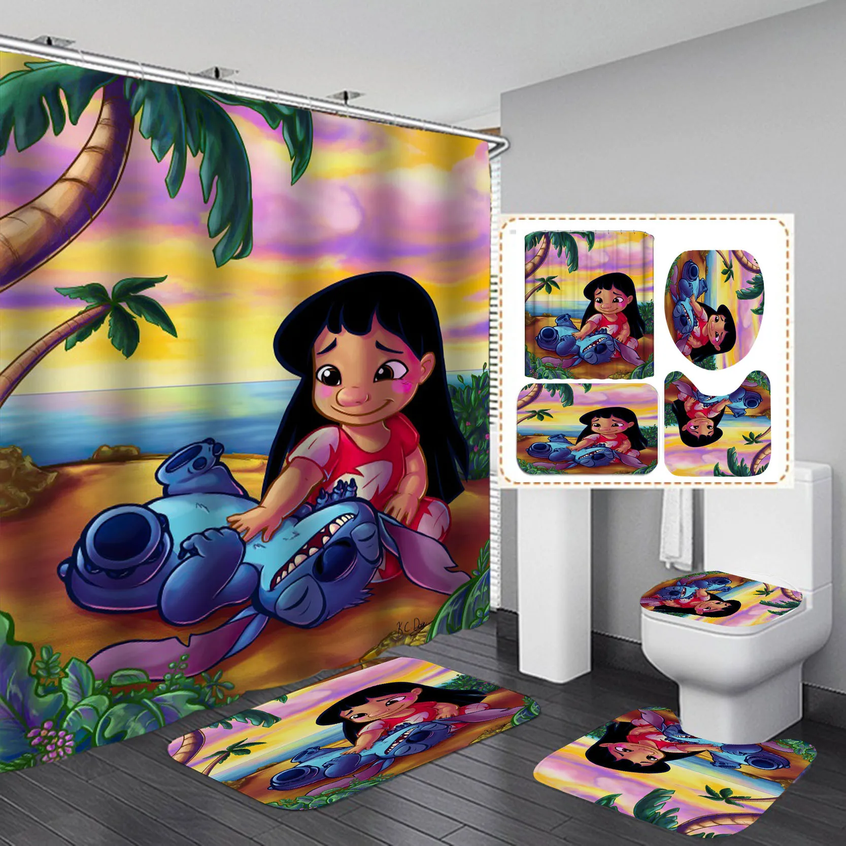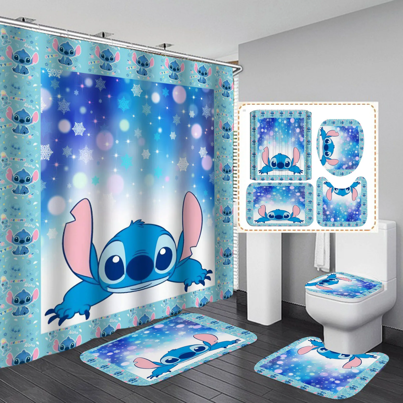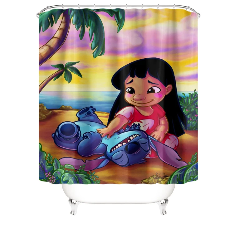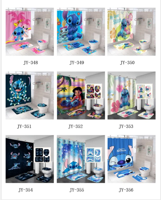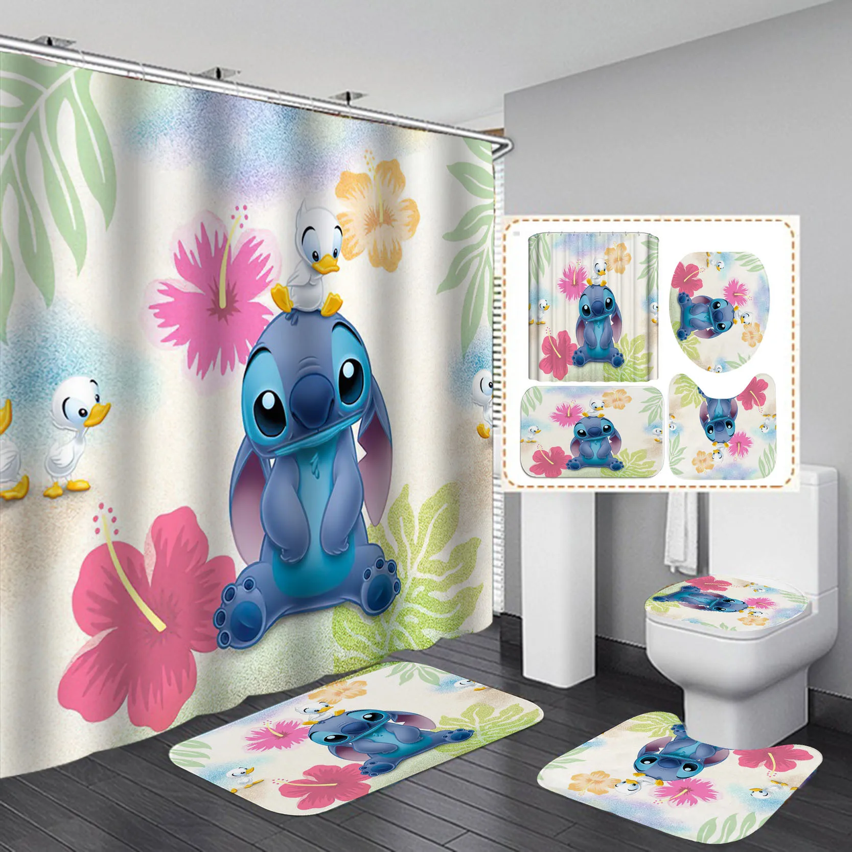 Lovely kids bathroom cartoon printed hotel shower curtain set Star baby stitch bathroom set