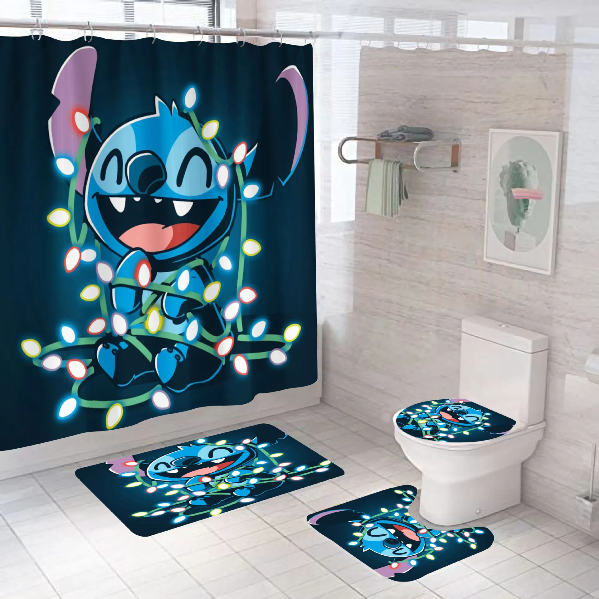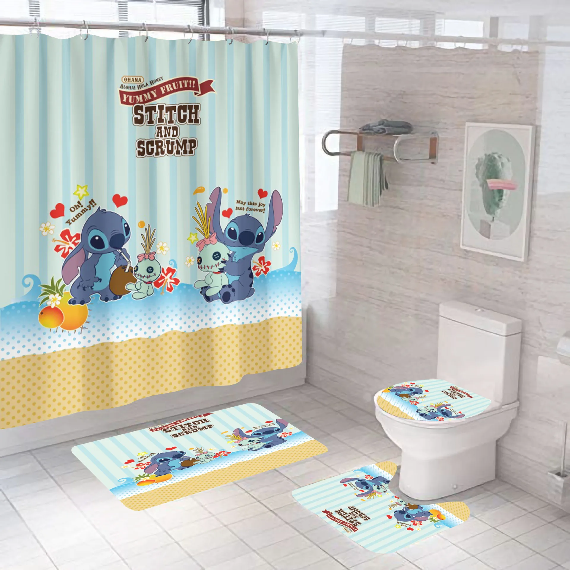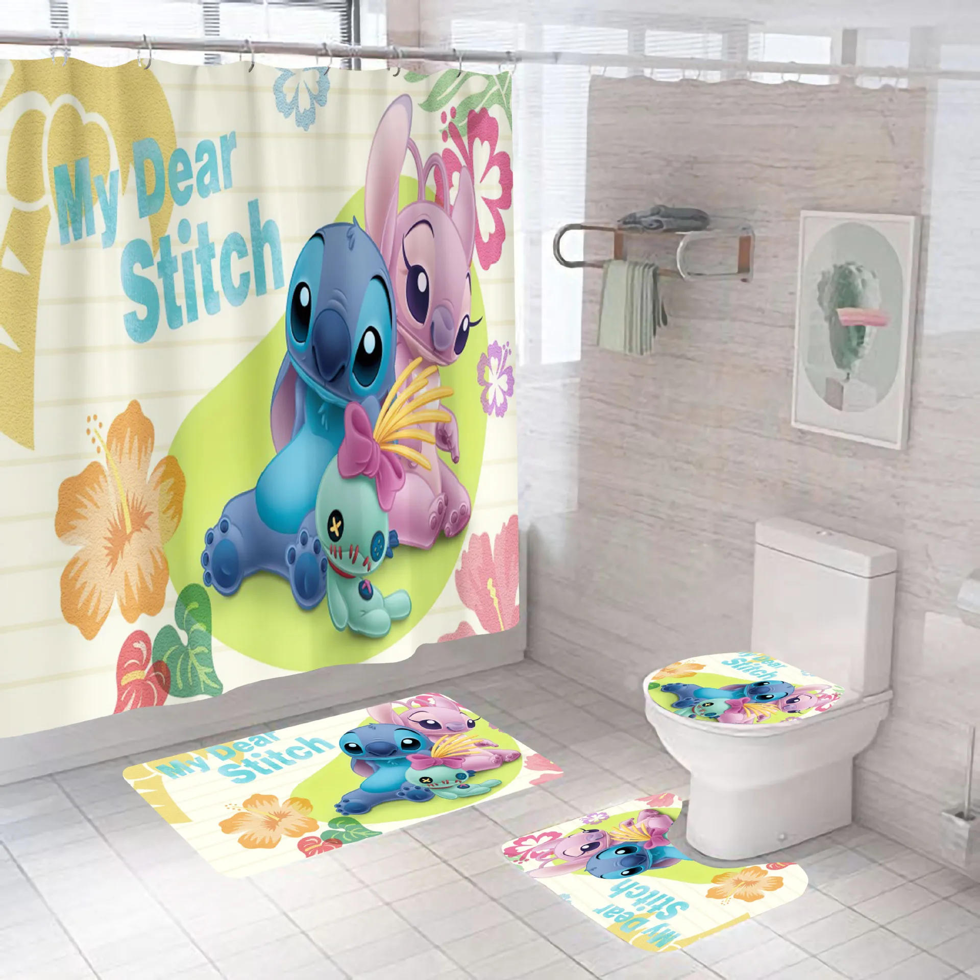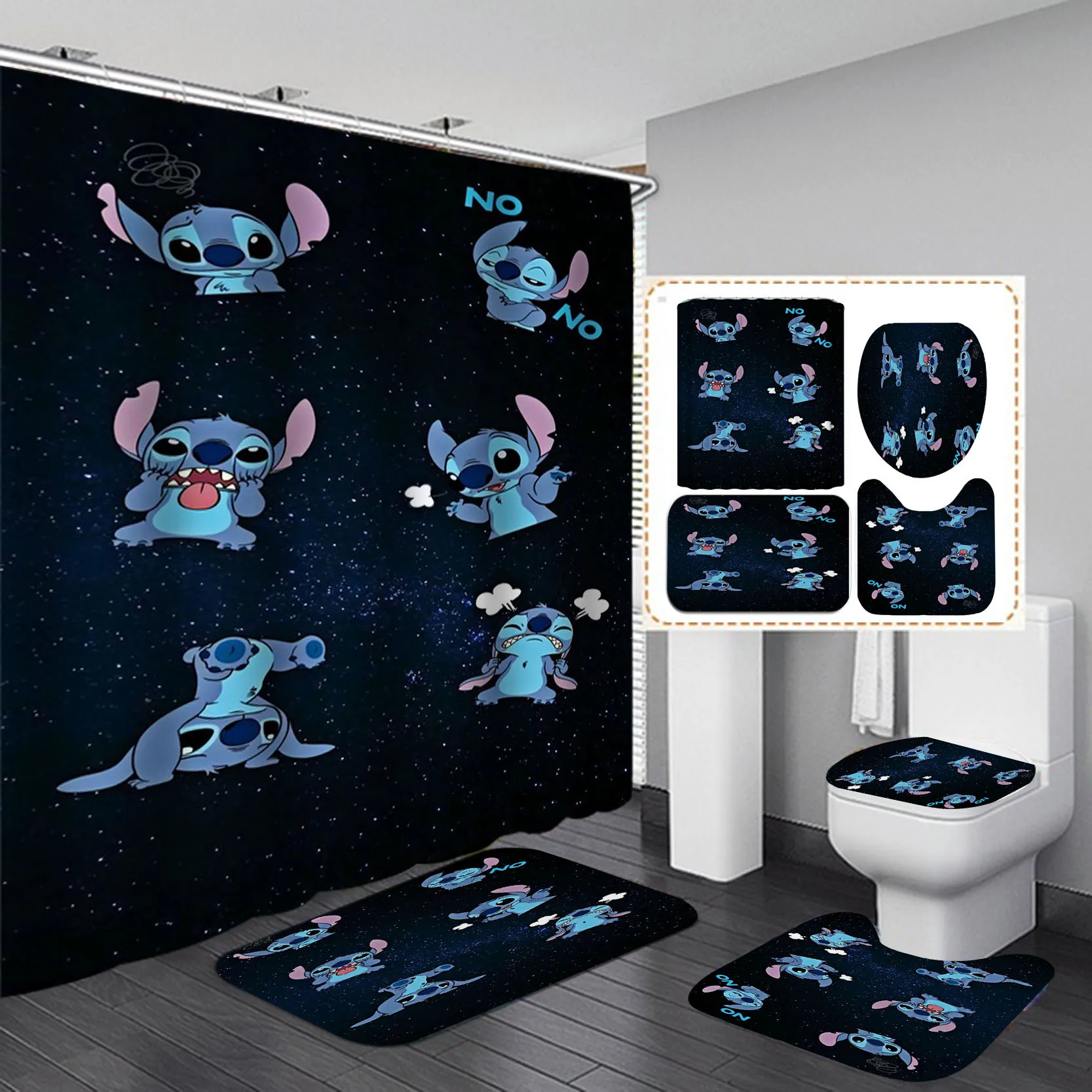 Lovely kids bathroom cartoon printed hotel shower curtain set Star baby stitch bathroom set