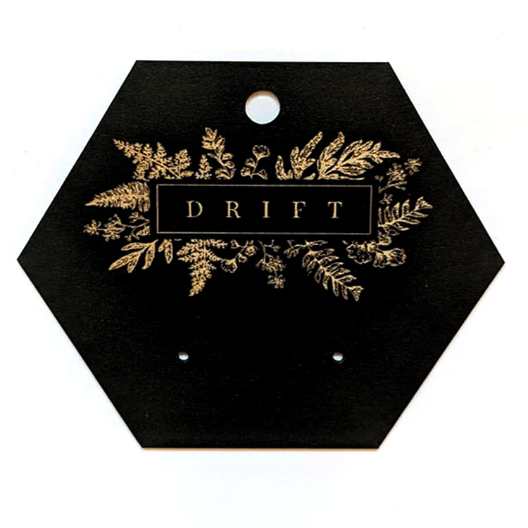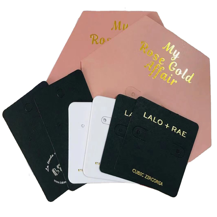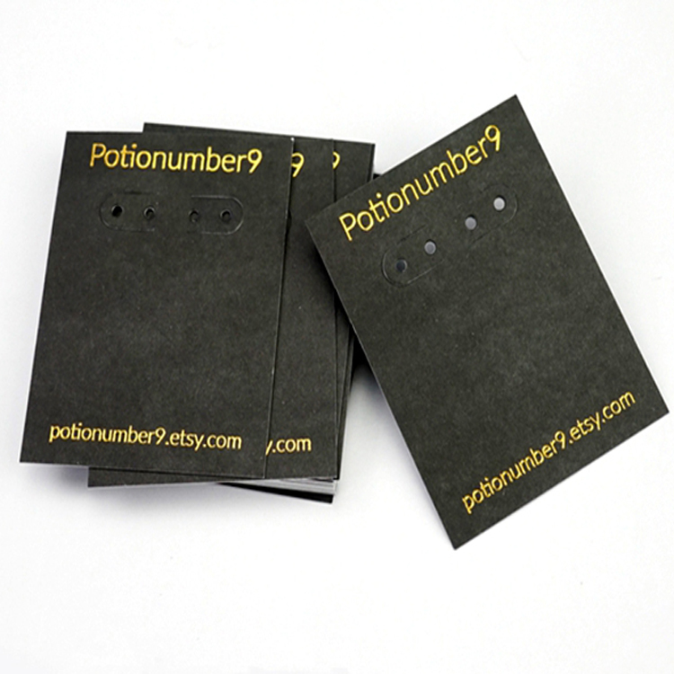 Low MOQ Gold Foil Printed Small Cards Low Price Black Necklace Earrings Paper Jewelry Display Cards with Slits and Holes