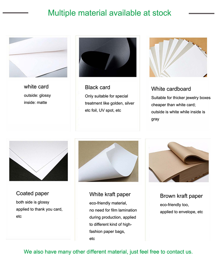 | Material | 250/300g white/brown kraft paper, offset paper, coated paper, special paper, etc. | |||