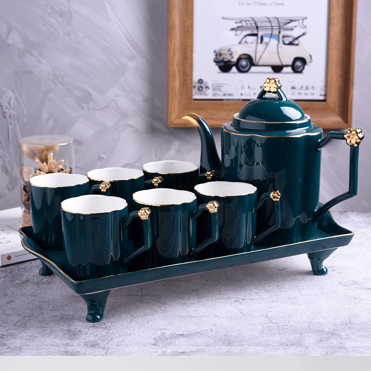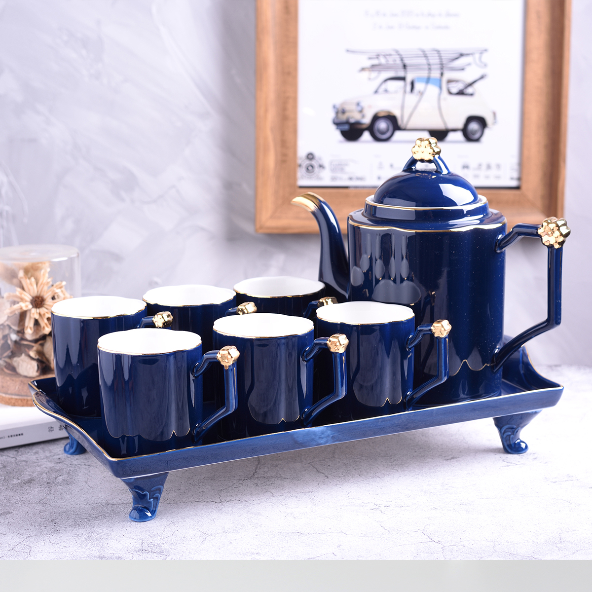 | product name: | Luxury 8 Piece Ceramic Coffee Tea Set with Gold Decor Ceramic Teapot and Cup Set |