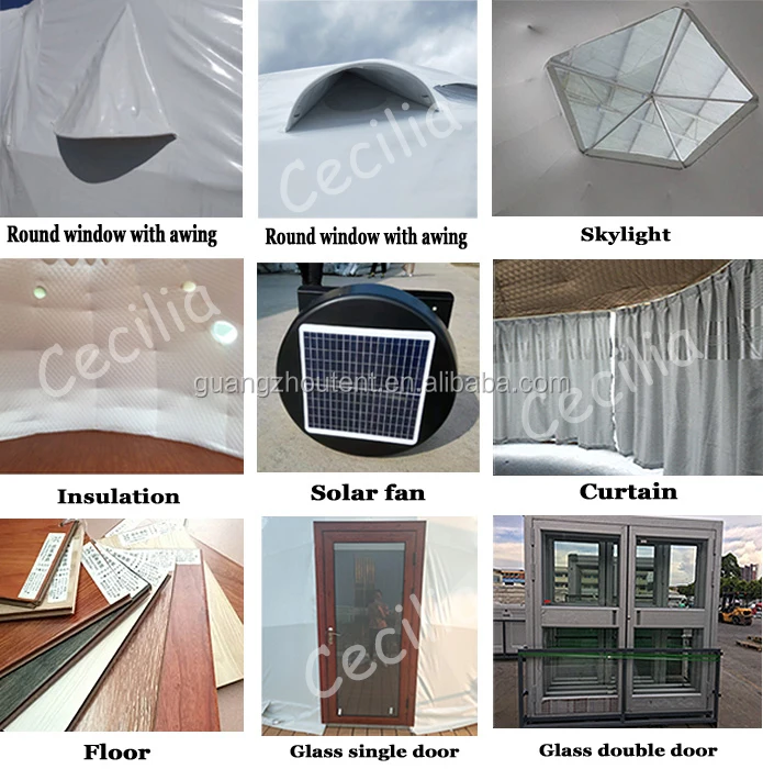 | Product name: | Hotel Dome Tent; | Door: | PVC Round/Square Doors or Glass Doors; |