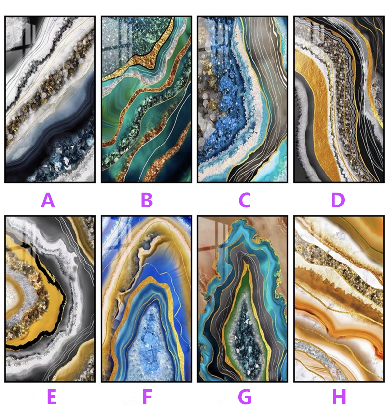 Luxury Marble Texture Abstract Crystal Porcelain Painting Wall Art Home Decor