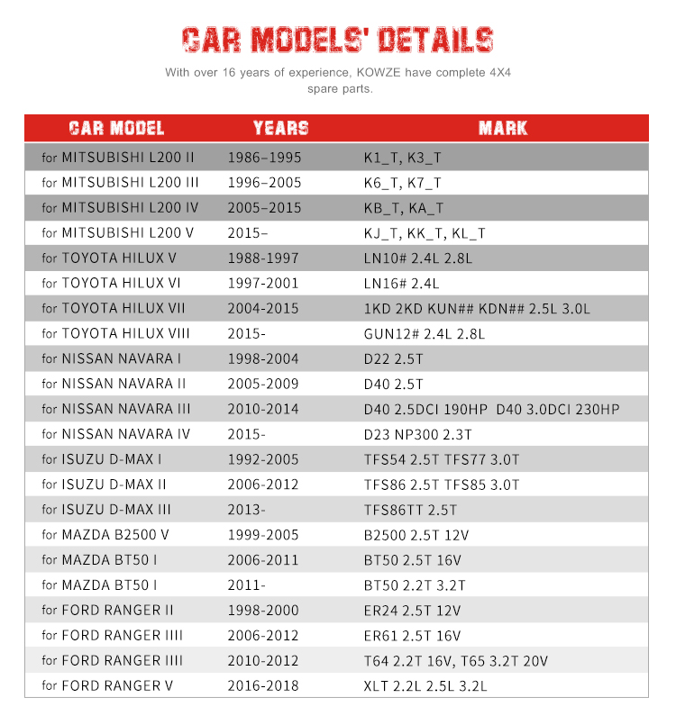 | 3. Applicable to: | For Mitsubishi Triton L200 Pajero Sport KB4T KA4T KH4W KH6W |