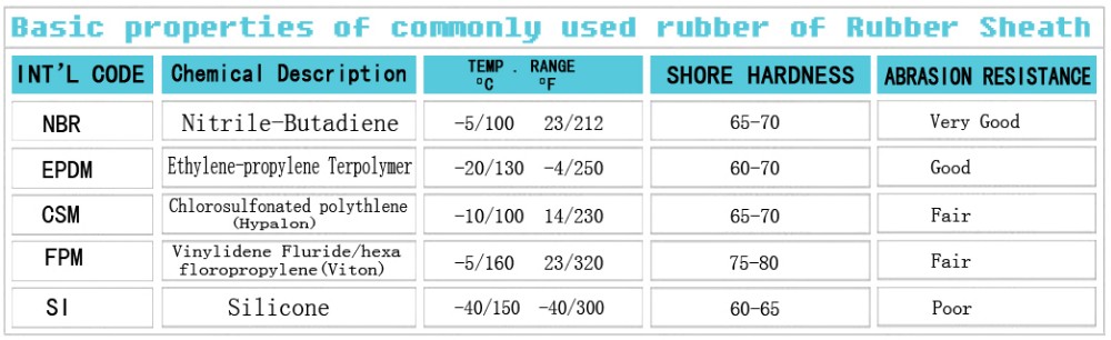 Our commonly used rubber sheath materials: