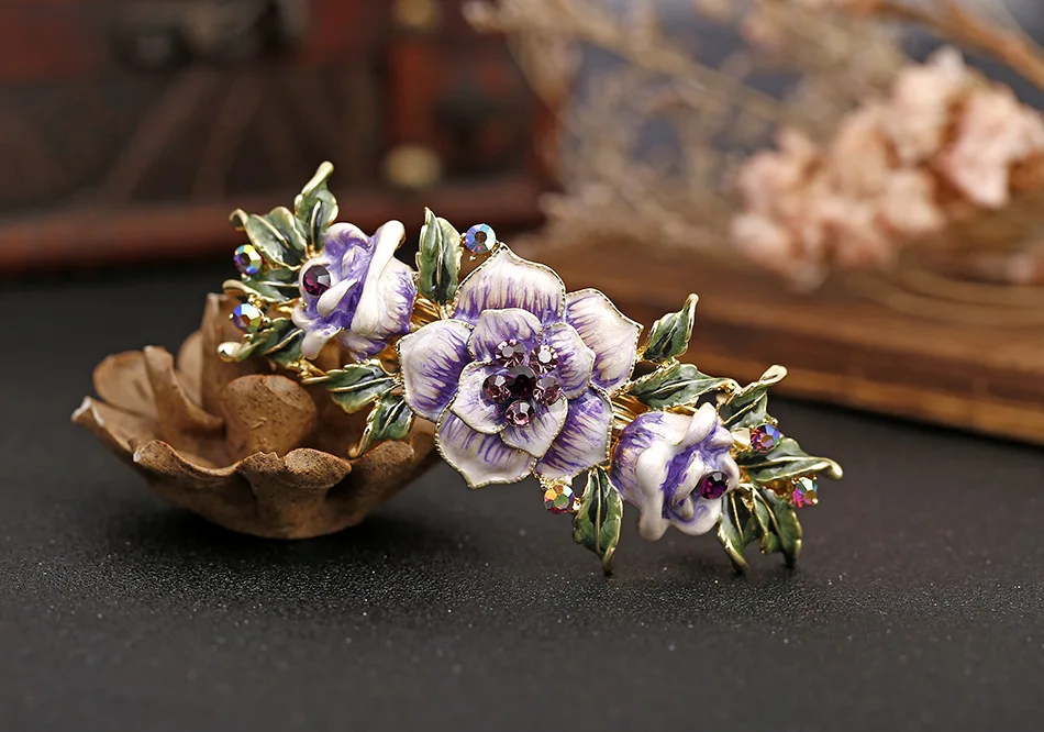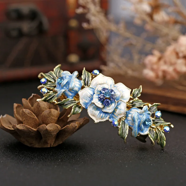 MT0003 Fashion Enamel Flower Barrettes Alloy Enamel Barrette Hair Jewelry