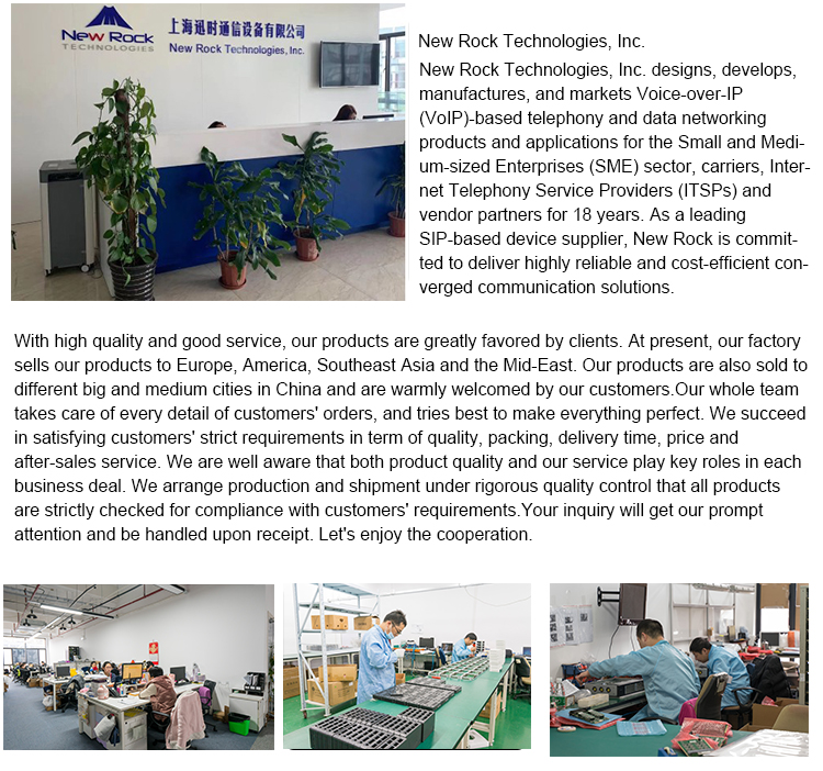 New Rock designs, develops manufacturers with the best cost and quality control and sells VoIP based telephony and data networks including IP PBXs, VOIP gateways, SBC.etc. SMEs, operators, ITSPs) and supplier partners for over 18 years of products and applications.