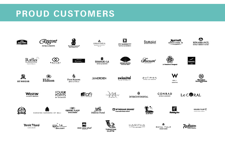 Years of experience and understanding of our customers allow us to provide quality products at reasonable prices. We have a proven track record of business reliability from clients around the world, including third-party partners, hotel chains, independent hotels and airlines.