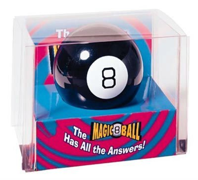 Use the magic ball to ask a random question, shake it, and turn it over. The answer mysteriously appeared on the porthole display.