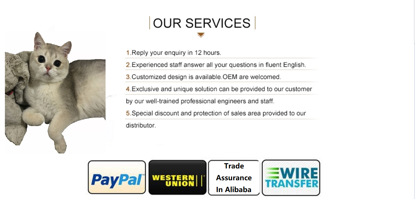 | Payment Way: | T/T, Western union, L/C, Paypal or trade assurance in alibaba... |