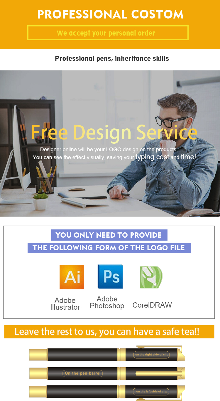 A: Our products can be customized, including material, size, logo, color and so on. We could provide not only pens but also design.
