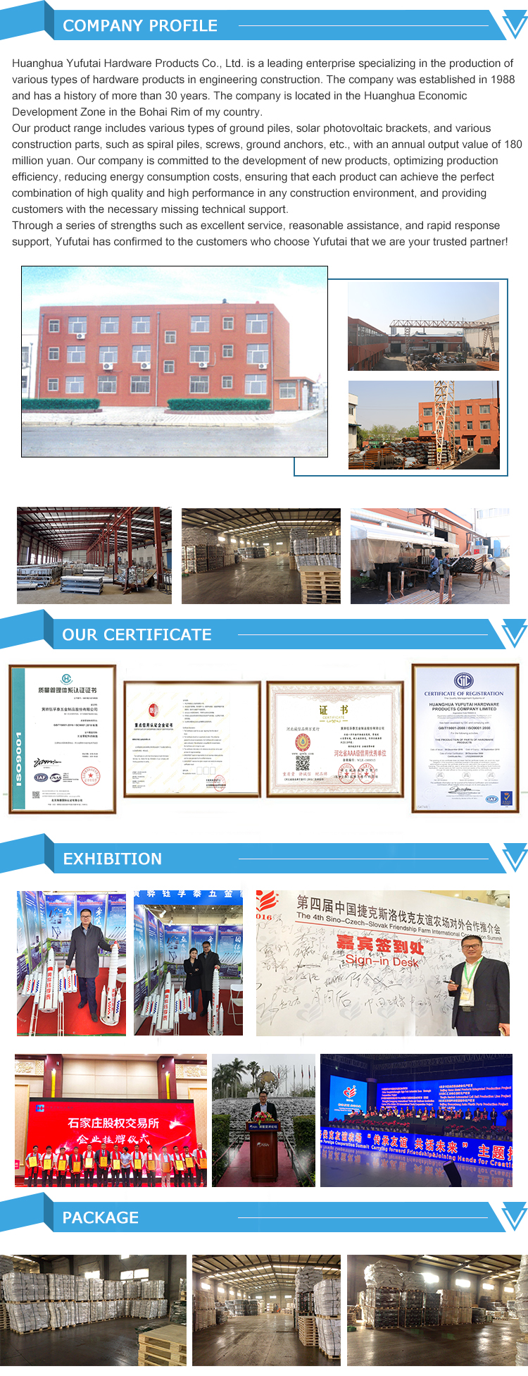 As a pioneer in this field, our professional technical team has consolidated the company's leading position in the global industrial field by focusing on innovative research and continuous improvement, and has established solid cooperative relationships with companies in the United States and Japan, such as modern farm solar photovoltaics Supporting construction, greenhouse construction, street light engineering, pasture fence construction, etc. With a series of advantages such as high-quality service, reasonable assistance, and fast response support, Yufutai confirms to the majority of customers who choose Yufutai: We are your trustworthy partner!