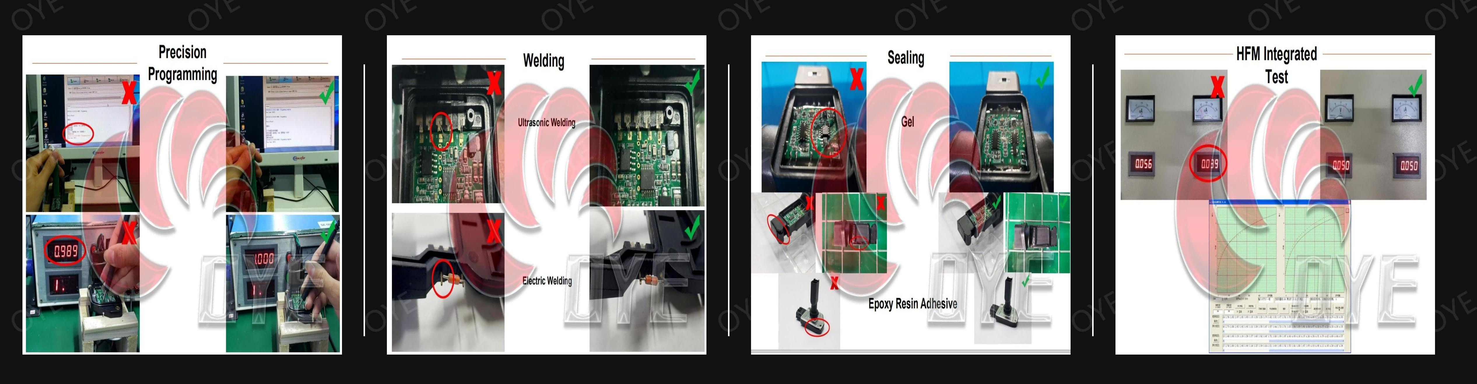 Dust removal--NTC (PTC) welding--hot wire cleaning and testing--hot wire welding--integrated circuit board programming--assembly and installation--basic point setting--HFM Comprehensive testing - sealing - finished product. |