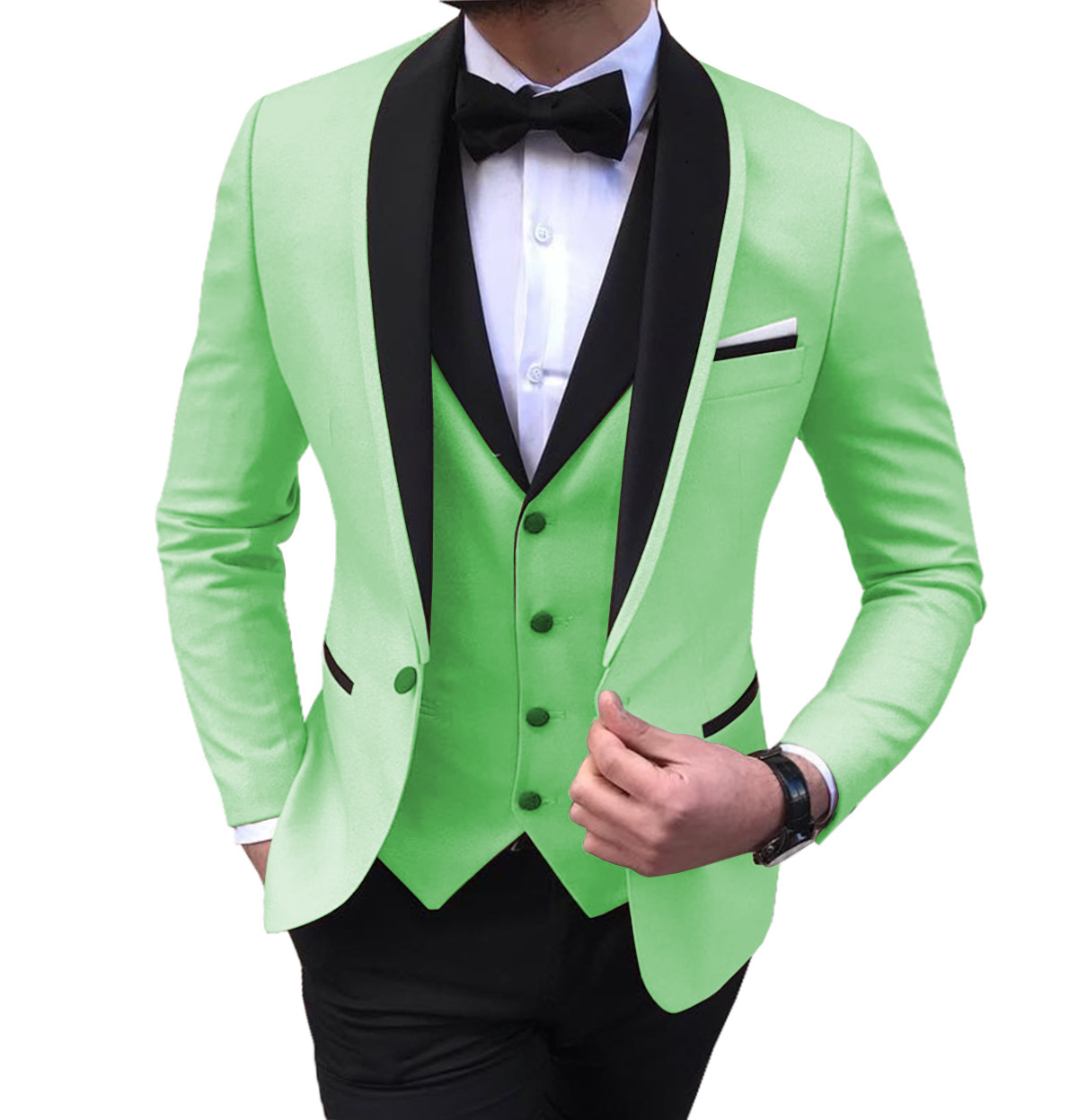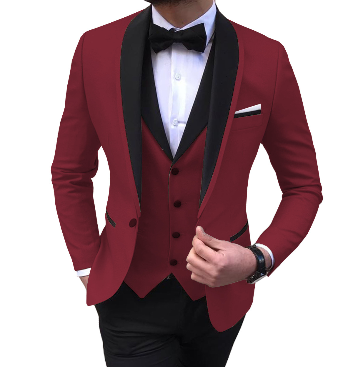 Men's 3 Piece Dress Blazer Vest Pants Regular Fit Shawl Lapel Solid Prom Tuxedo Wedding Groom Suit Tuxedo Suit