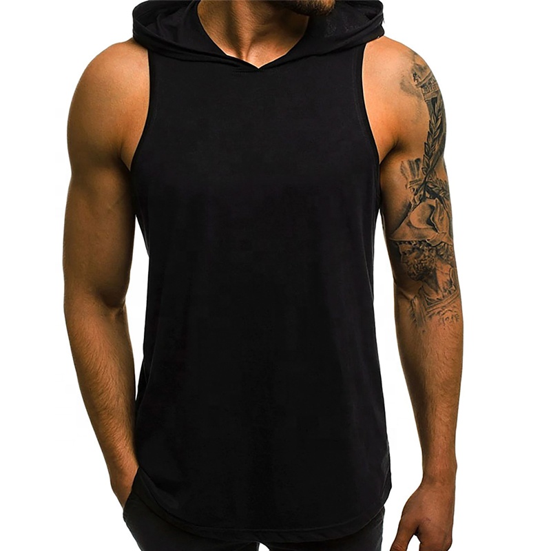 Men's Bodybuilding Clothing Hooded Gym Stringer Tank Tops and Fitness Men's Sleeveless Shirts Athletic Tank Tops Cotton Undershirt Muscle Tops