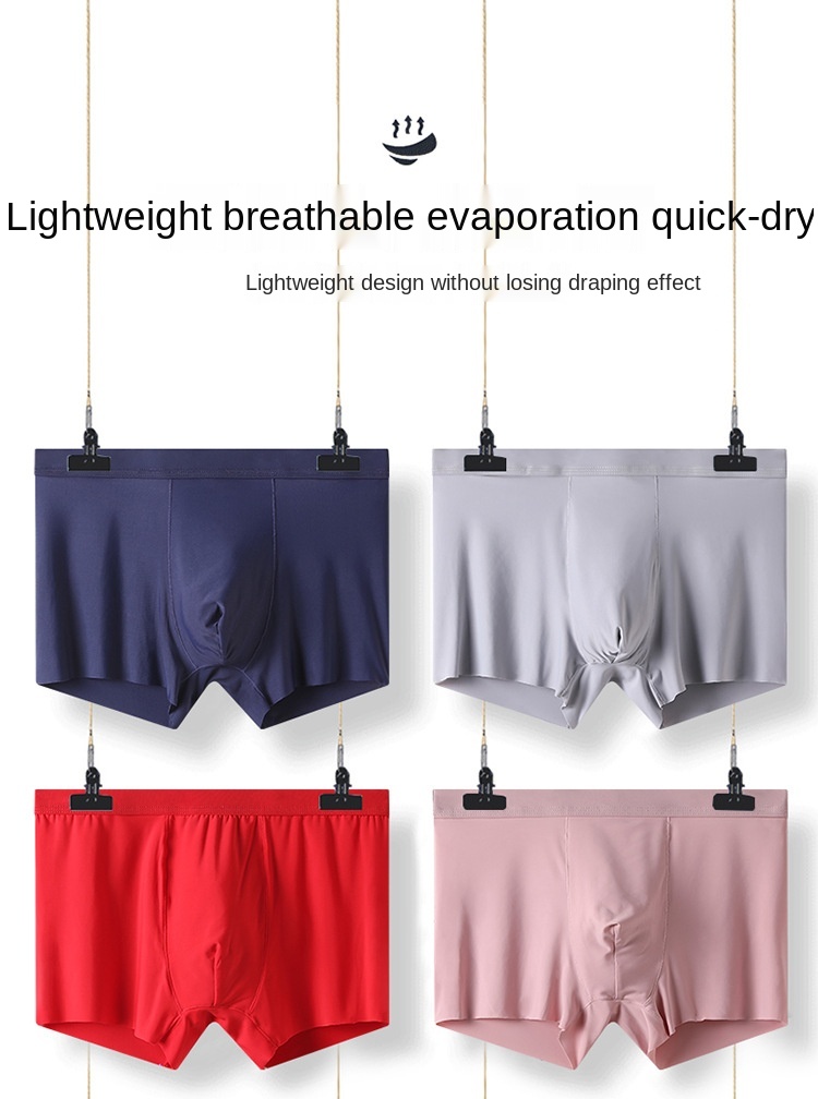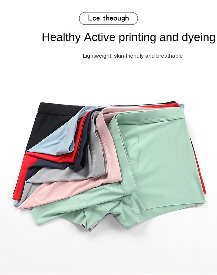 Men's Silk Underwear Boxer Ice Silk Breathable Solid Color Mid Waist Briefs