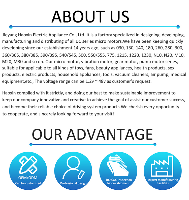 | 4) DC motor type: | Ordinary micro motors, vibration motors, gear motors, water pump motors? |
