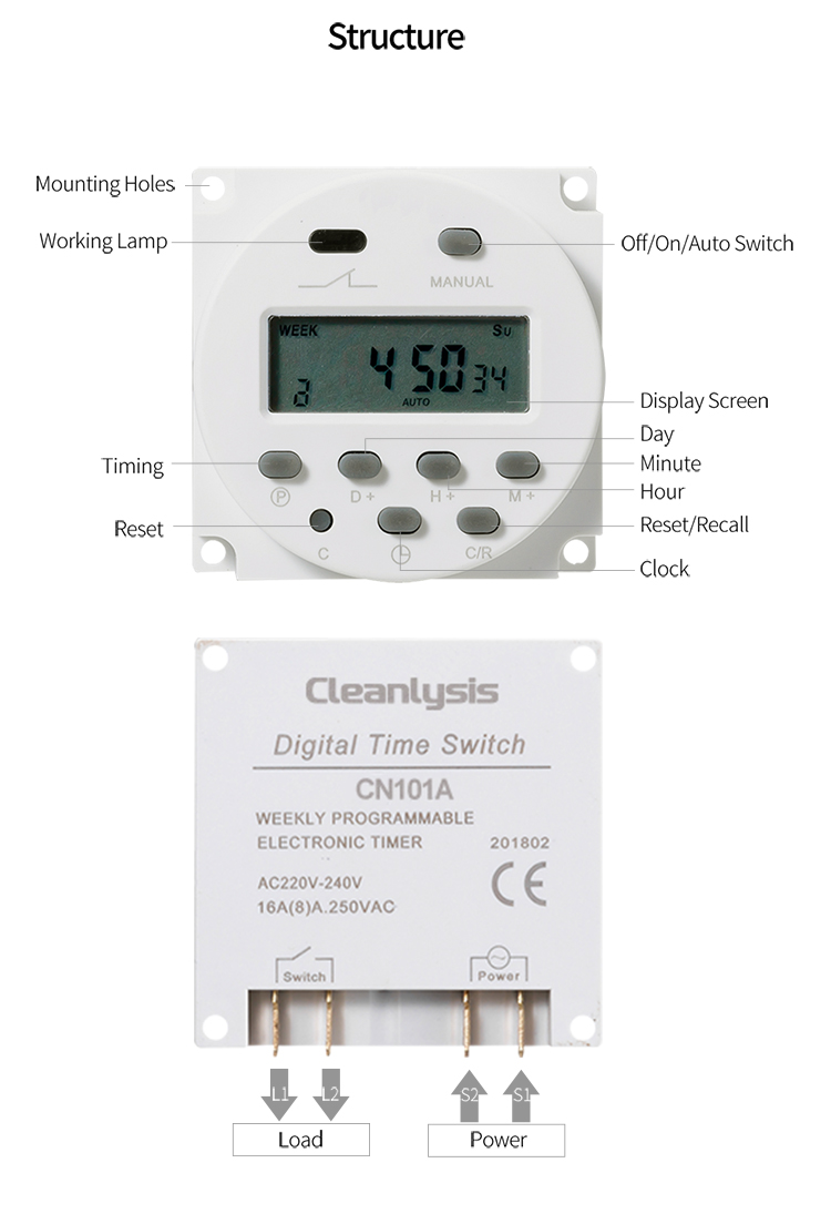 Mini electronic timer 220V-240V 16A CN101A with battery