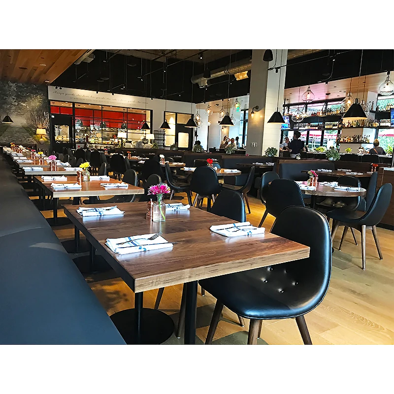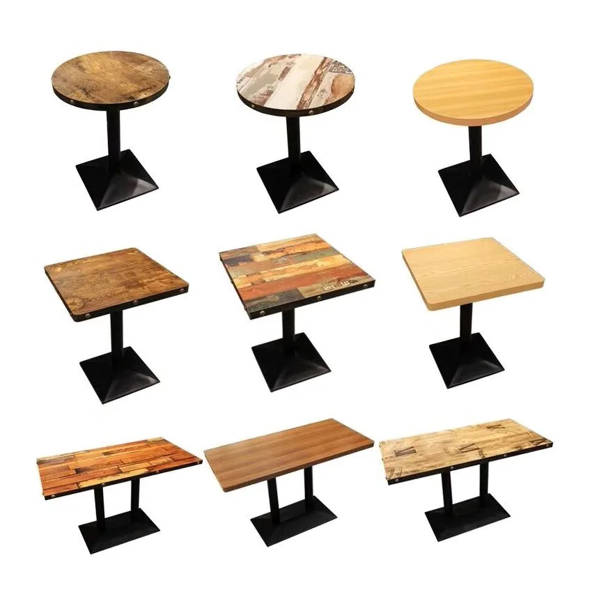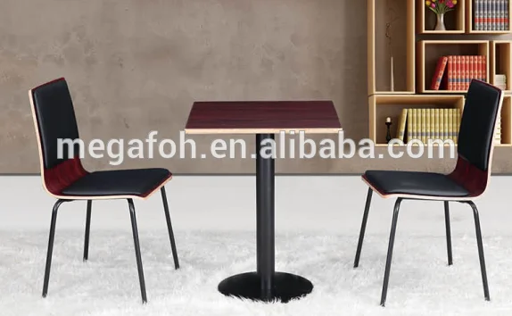 Modern restaurant 2 person wooden dining table with black metal leg and melamine top