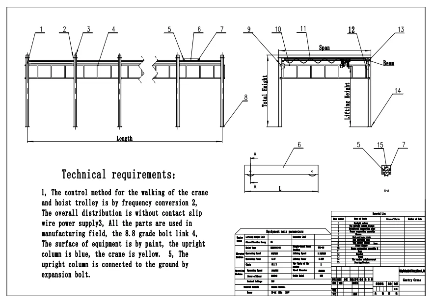 The following technical parameters is for the common size(Most of clients need). Pls check the rated load, the span and the lifting height is suitable for your requirements.