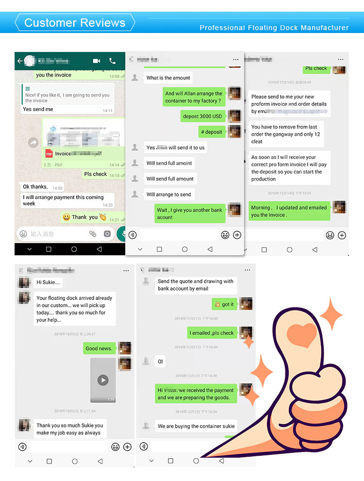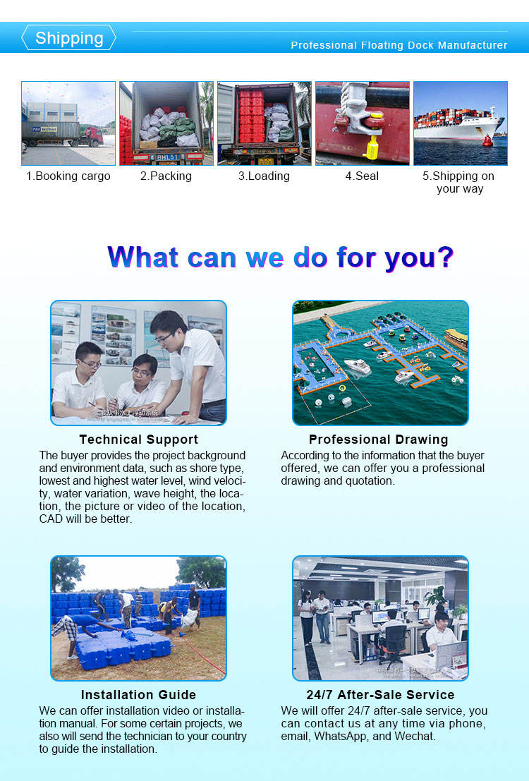 Guangdong Zhonghang Water Equipment Construction Co., Ltd. (hereinafter referred to as GDZH DOCK) was established in 2011. It is mainly engaged in the research and development, manufacture and sales of floating systems. It is a leading enterprise in the floating water facility industry and enjoys a high reputation at home and abroad. Domestic and foreign. GDZH DOCK provides engineering, manufacturing and installation of various floating systems such as floating docks, floating platforms, floating houses, floating swimming pools, floating stages, floating restaurants, floating bridges, fish farming systems, yacht docks and jet ski docks. The products comply with ISO9001-2008 quality management system certification and ISO14001-2004 environmental management system. All products are CE certified. .Our aim is to improve customer satisfaction with good reputation, preferential price and good after-sales service. Through unremitting efforts, we believe that we will establish a long-term partnership.