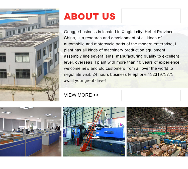 Gongge Trading is located in Xingtai City, Hebei Province, China. It is a modern enterprise that develops various types of auto and motorcycle accessories.