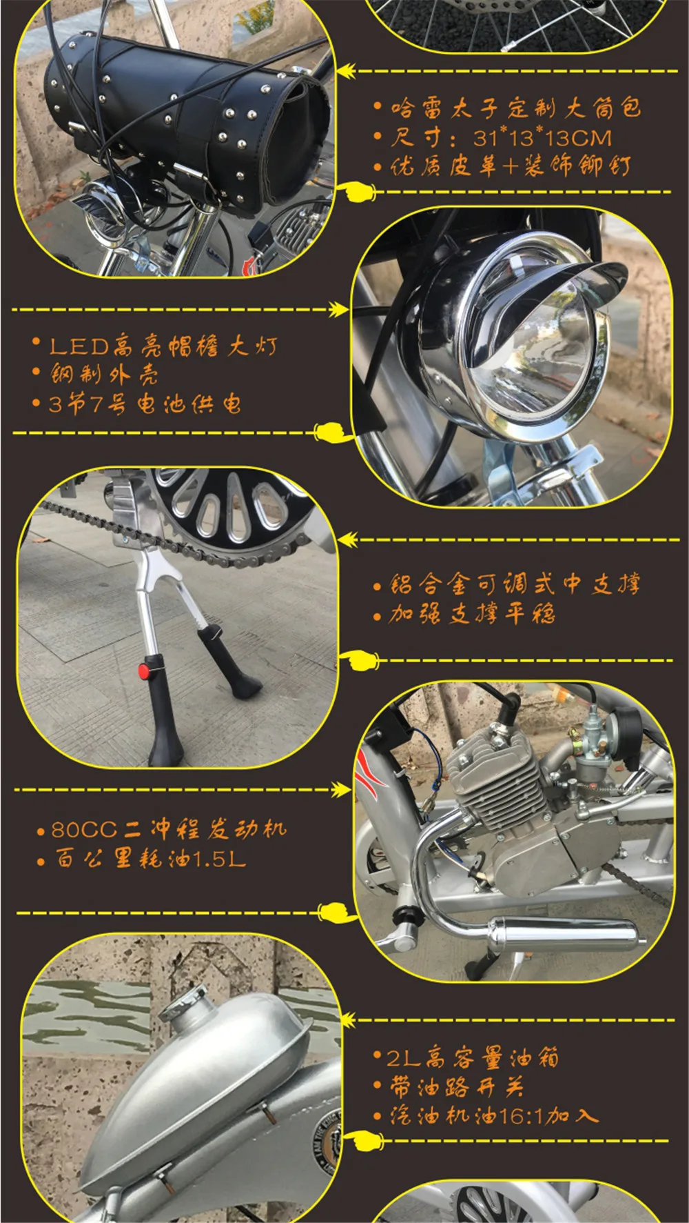 Motorcycle fuel modified Chopper Bicycles 80CC two-stroke engine power-assisted bicicleta locomotive Special Motored bike