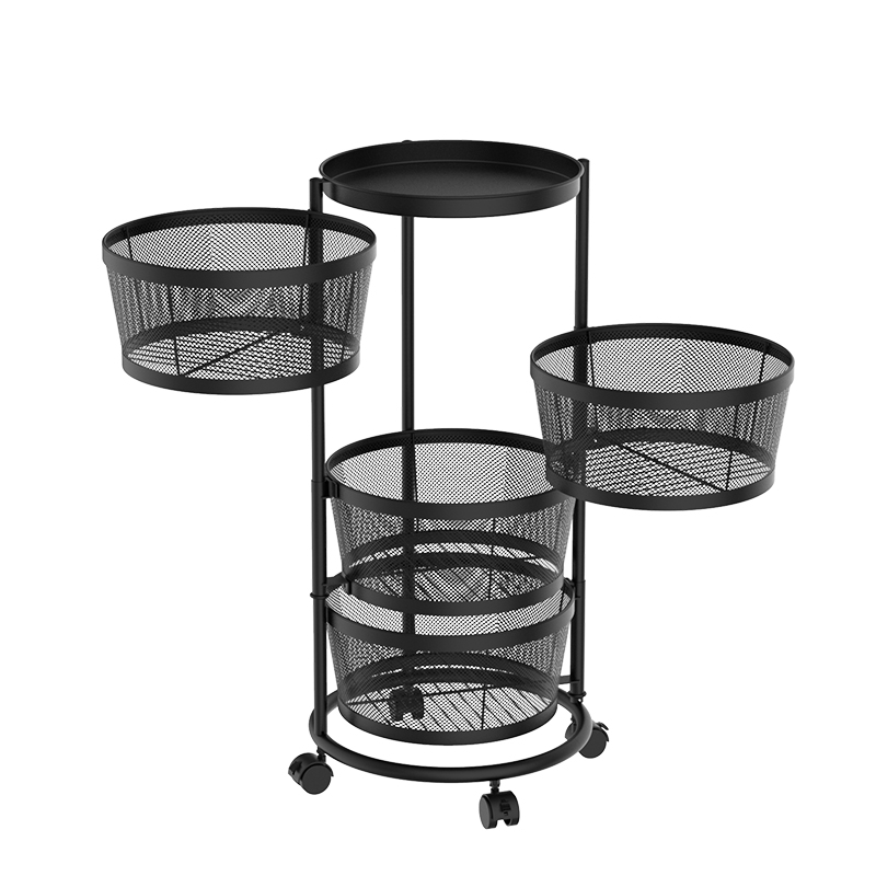 Multi-layer metal 360-degree rotating kitchen large tray vegetable basket kitchen trolley storage trolley