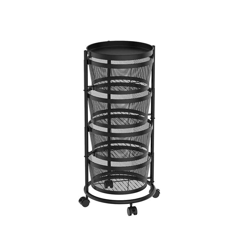 1. Basket + steel pipe 2. Can be used in kitchen, living room and bedroom 3. 360-degree rotation, easy to move. 4. Compact packaging |