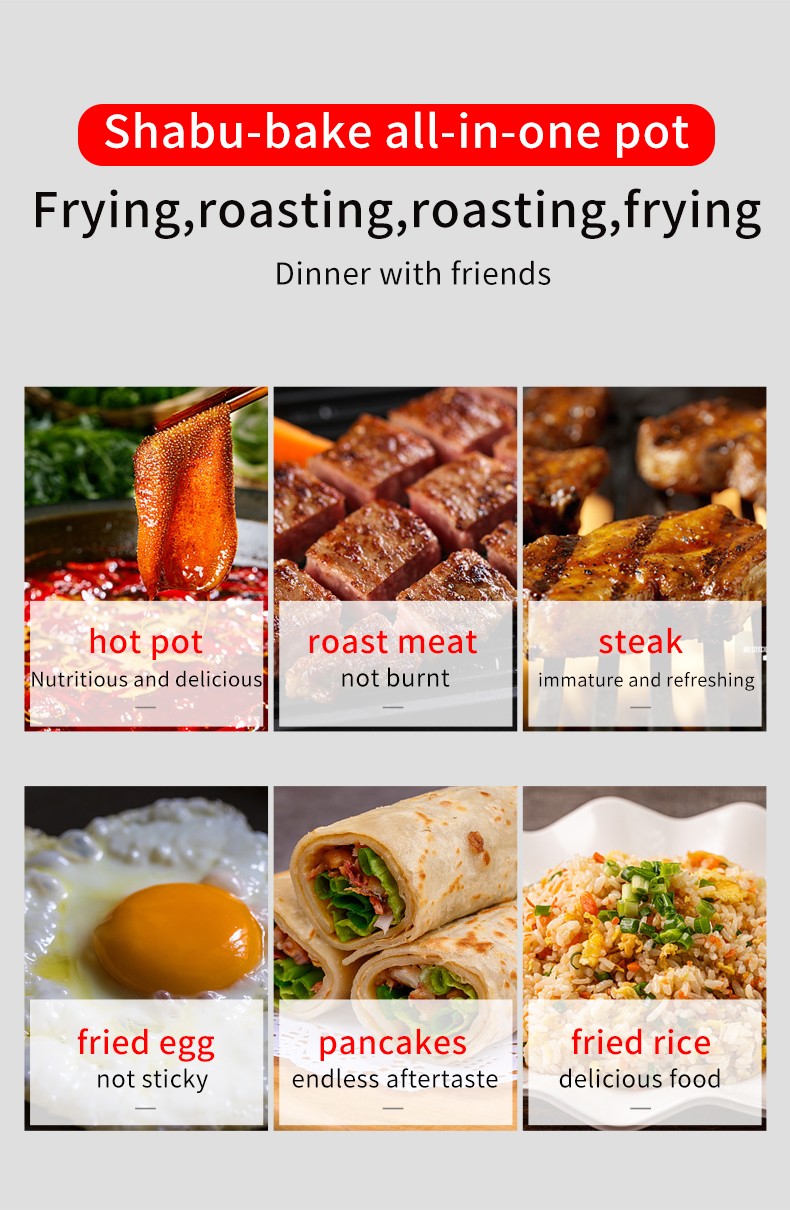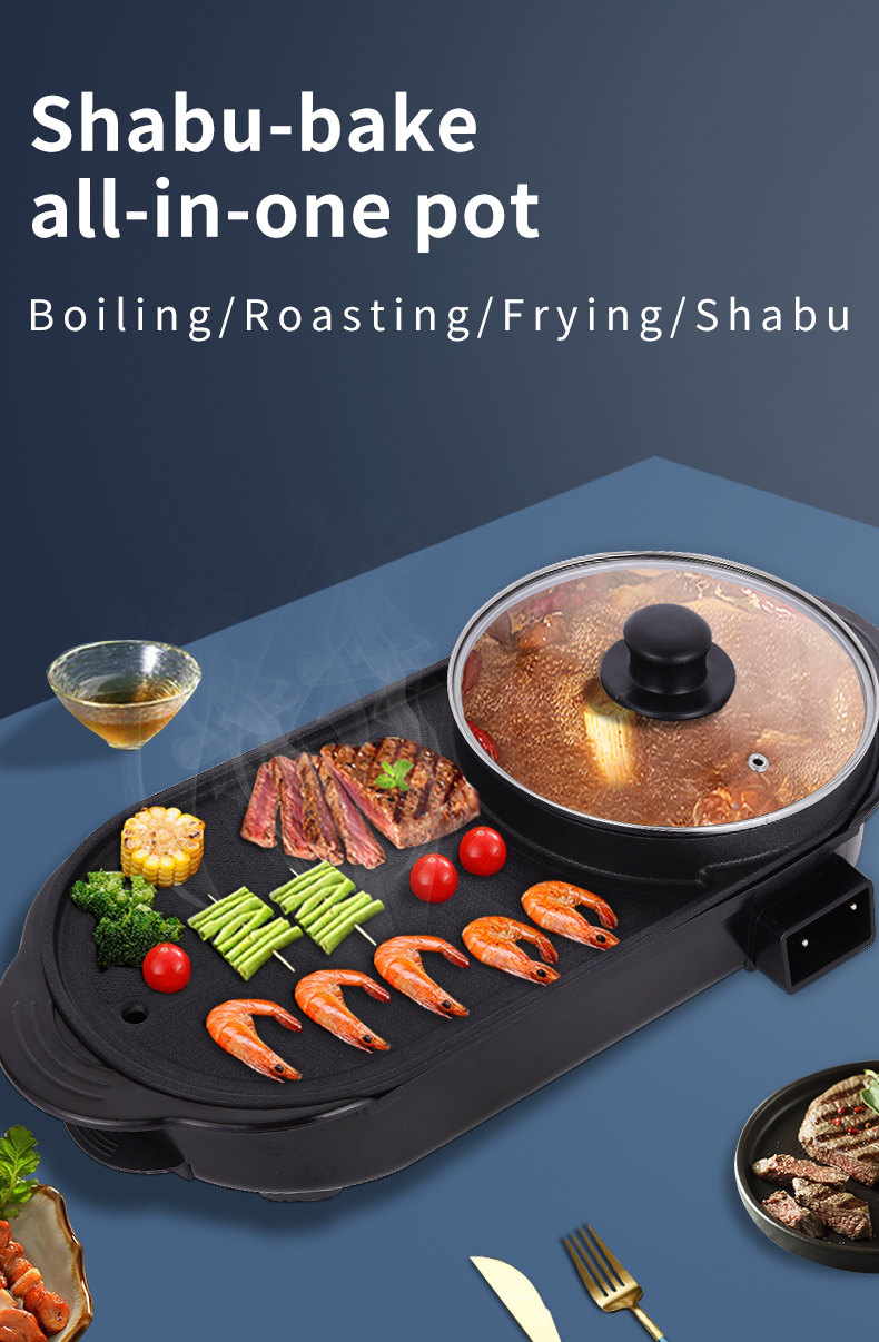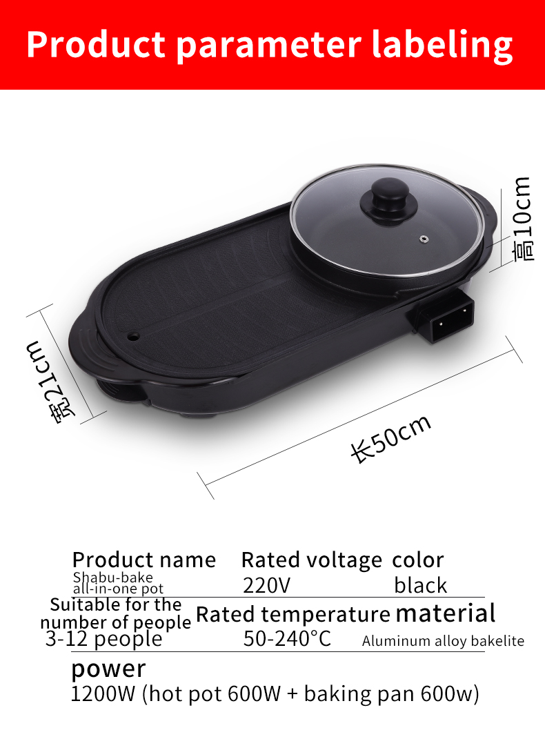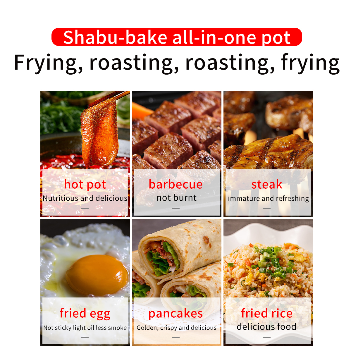 Multifunctional electric oven with hot pot smokeless barbecue 110V, 220V hot pot