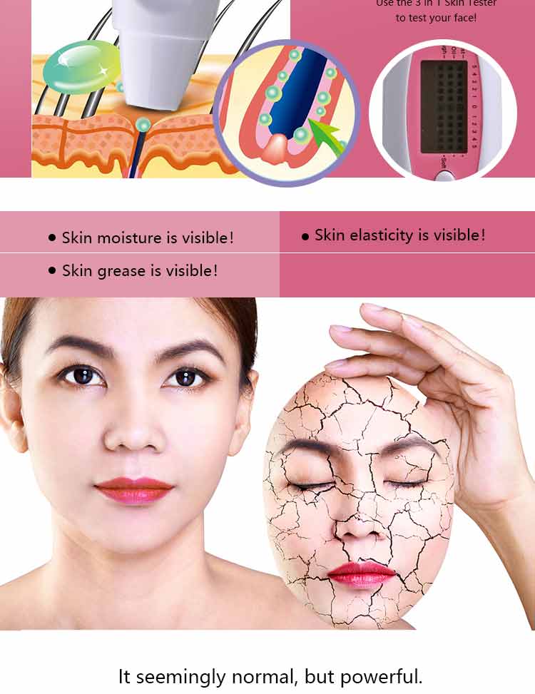 2. According to the test results, especially replenish water in the case of insufficient water, to ensure that the skin always maintains moisture and resist skin aging,