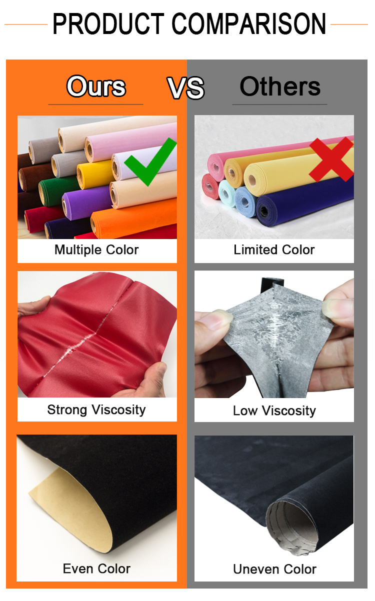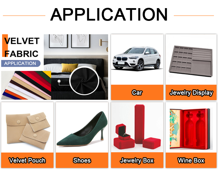 Flocked Fabrics can be used on jewelry box, electronics package box, gifts and crafts box, Alcohol package, Pouch, furniture, album, clinical skin flocked fabrics, garment, shoes, etc.