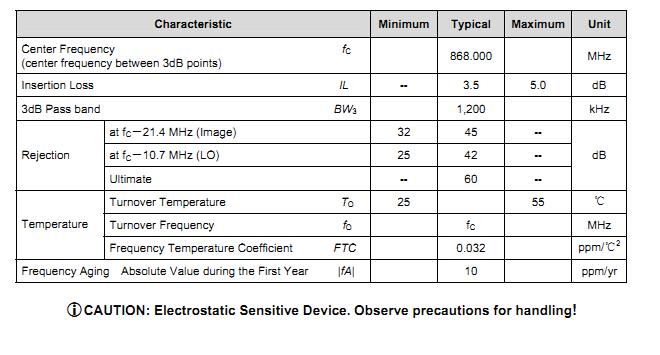 | Center/cutoff frequency: | 868MHz | input resistance: | 50 ohms |