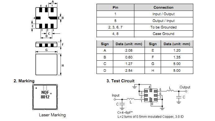 SAW filter NDF8012 package size