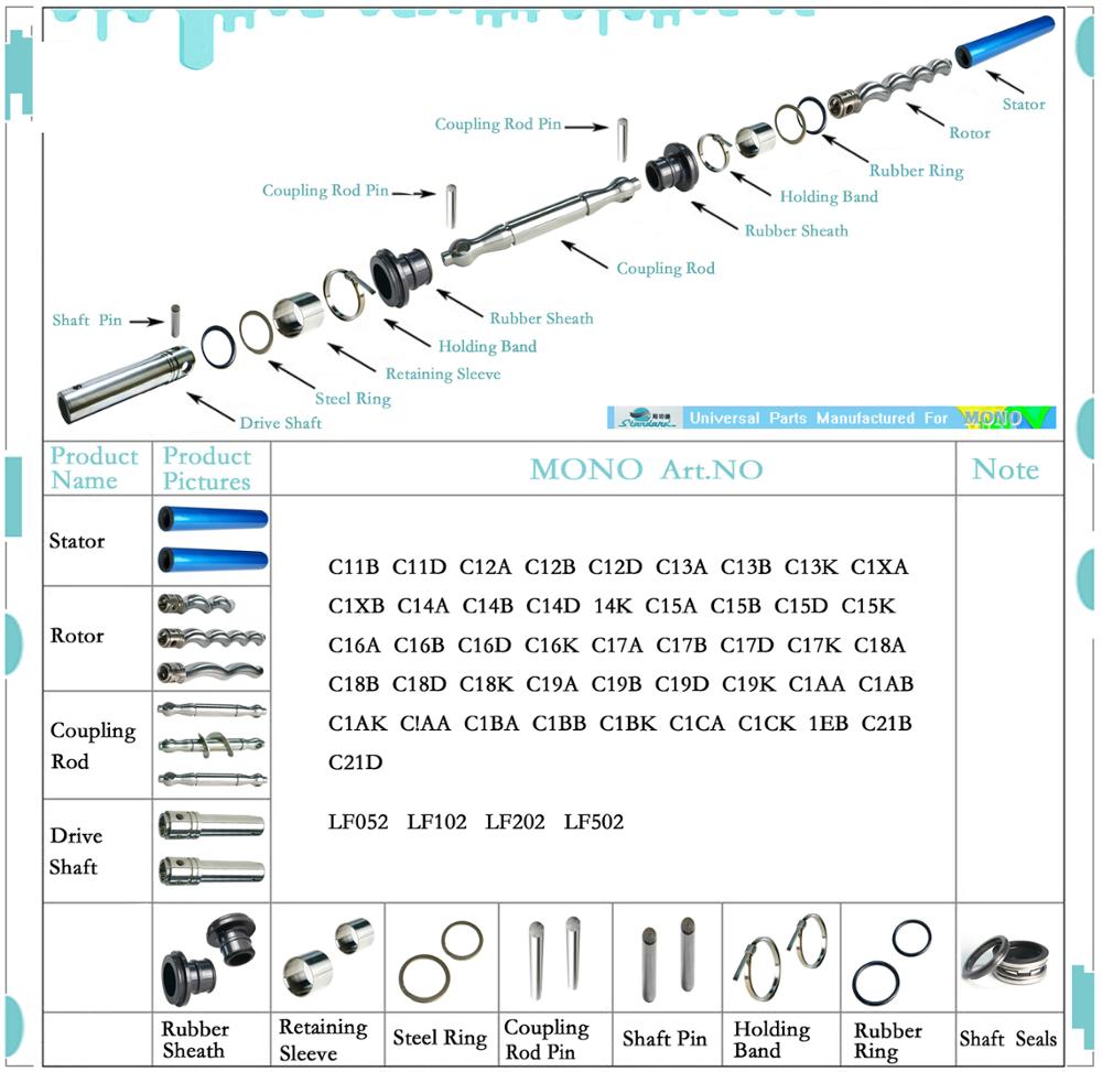 We offer STD universal parts that can be used with other brands of single screw pumps in the following series. For others not listed, please contact STD