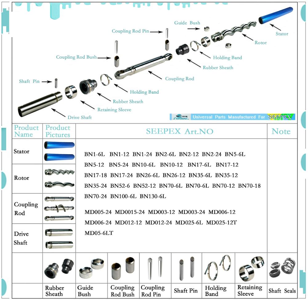 STD uses its own professional knowledge, manufacturing capabilities and channels to provide a full range of screw pump accessories for major global brands (Germany Netzsch, Seepex, Mono, etc.), these accessories are excellent in performance and durable, including: stators, rotors, drive shafts, Coupling, PIN, PIN or complete set of rotating parts, etc.