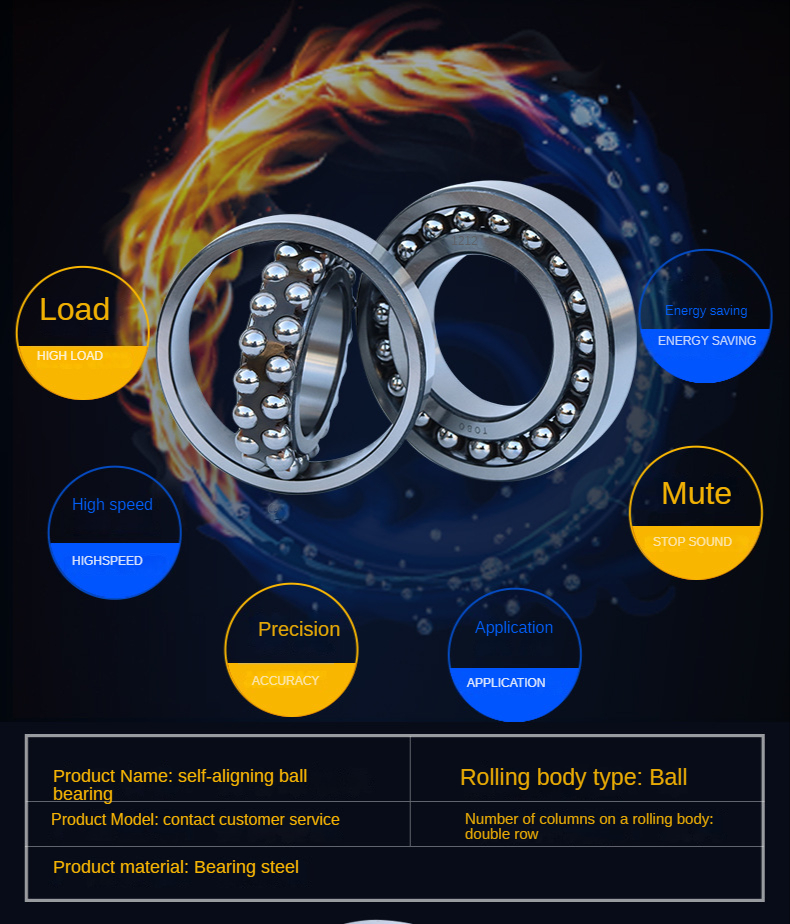 Self-aligning ball bearings are suitable for heavy loads and shock loads, precision instruments, low-noise motors, automobiles, motorcycles, metallurgy, rolling mills, mining, petroleum, paper, cement, sugar and other industries and general machinery.