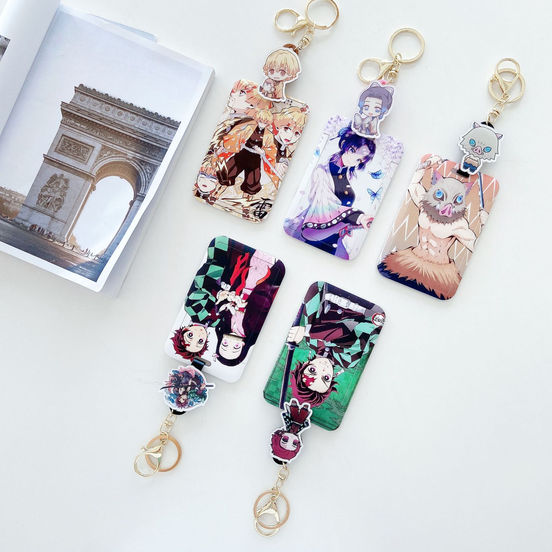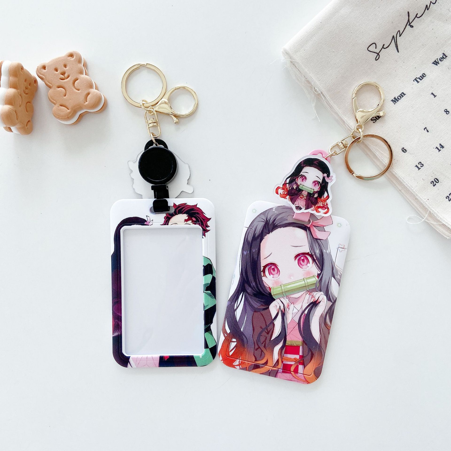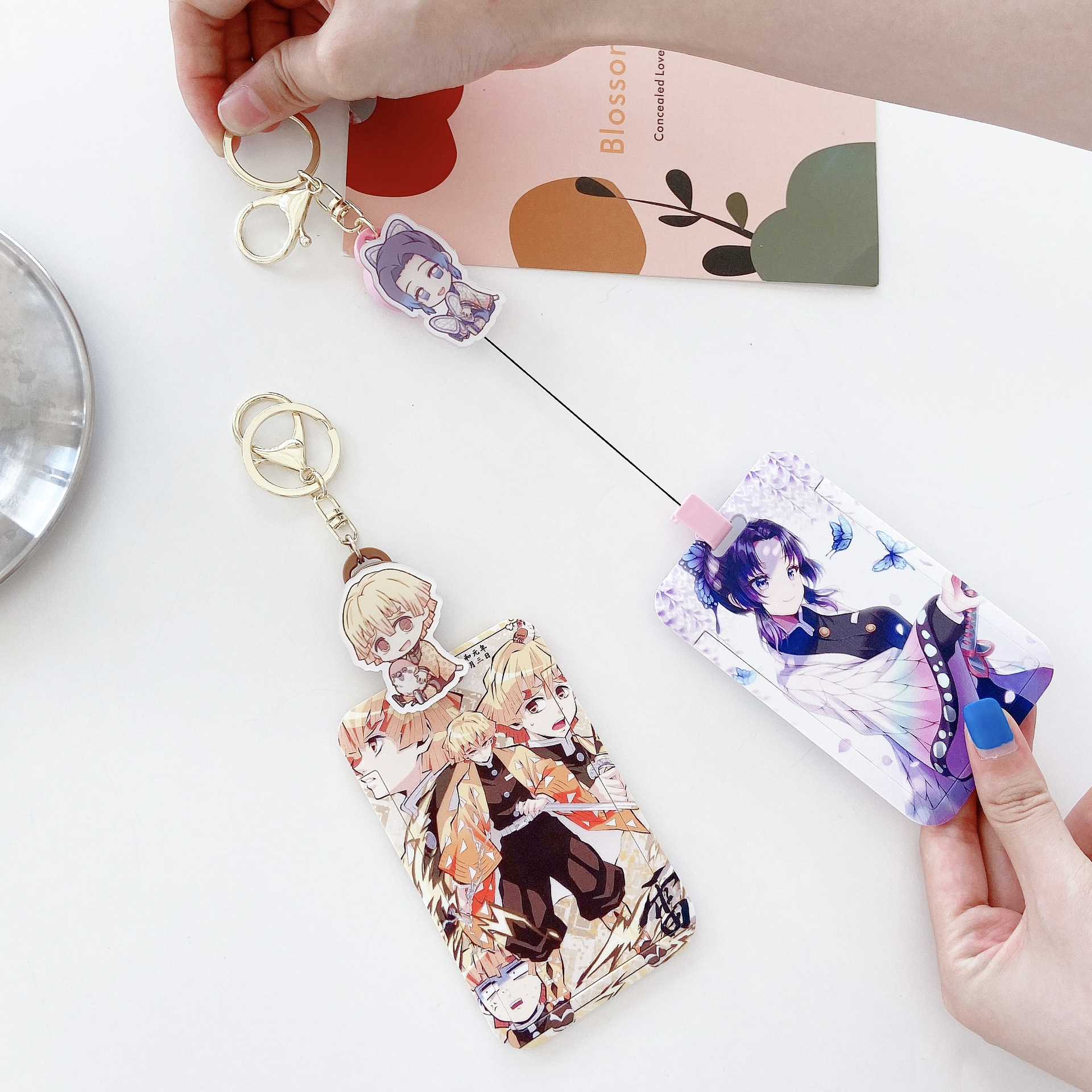 Name Badge Plastic Card Holder With Retractable Easy-Pull Buckle Cute Cartoon Demon Killer Card Holder Keychain Pendant Shell
