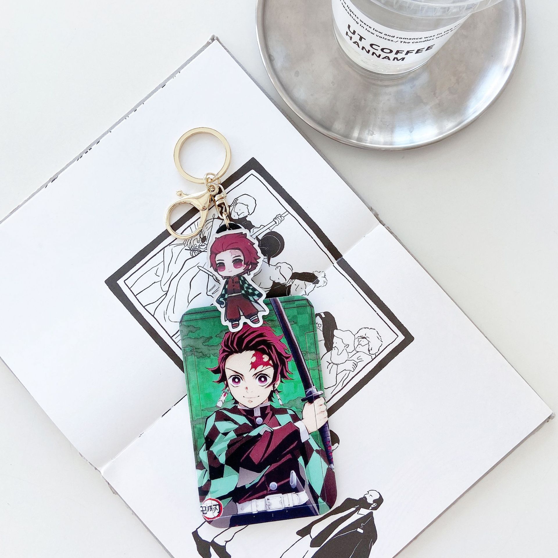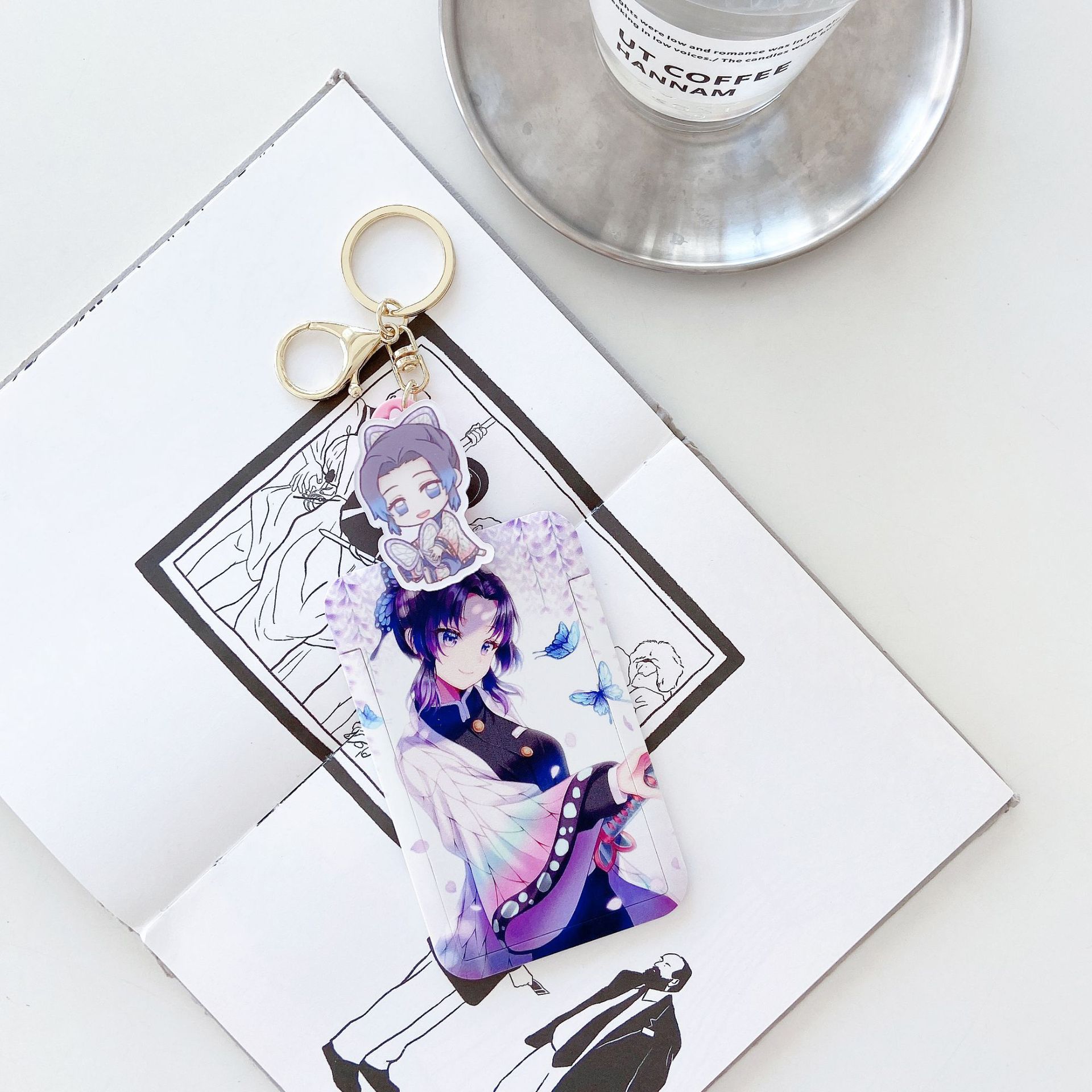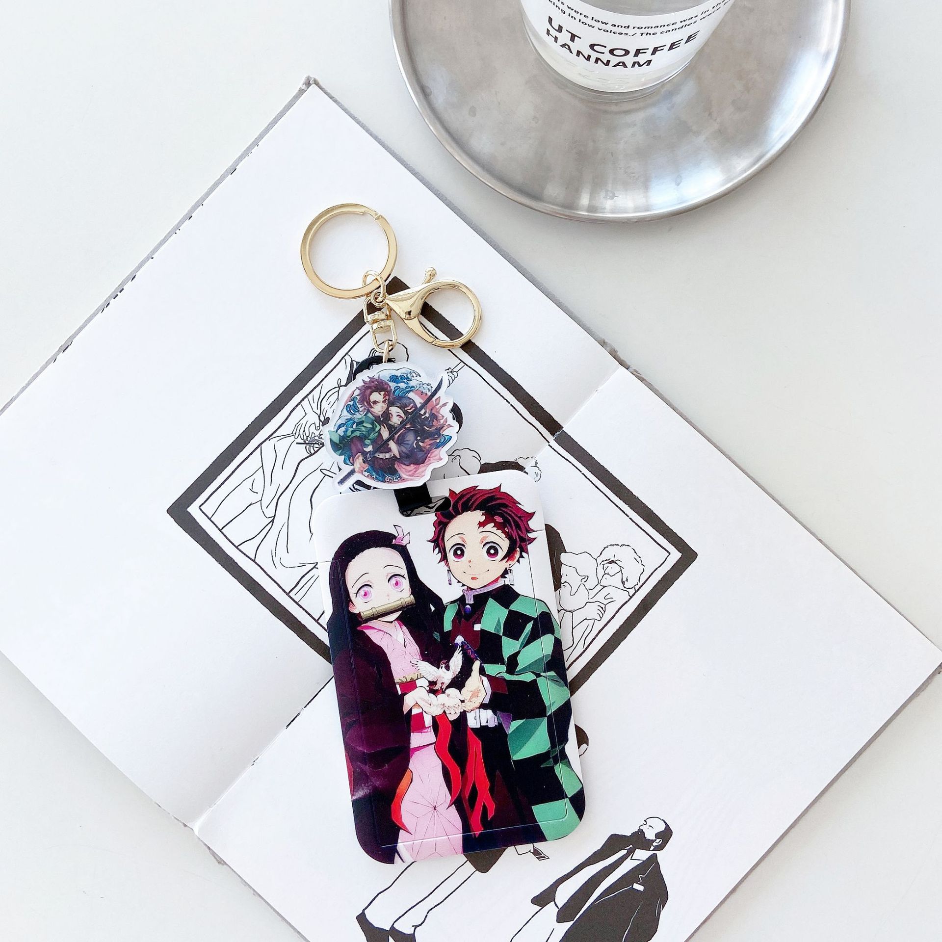 Name Badge Plastic Card Holder With Retractable Easy-Pull Buckle Cute Cartoon Demon Killer Card Holder Keychain Pendant Shell
