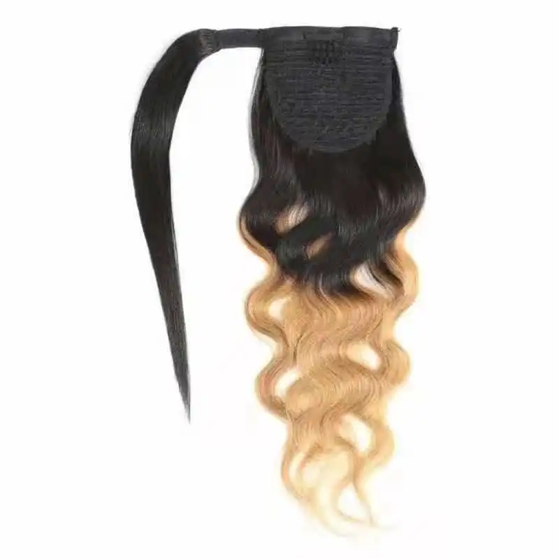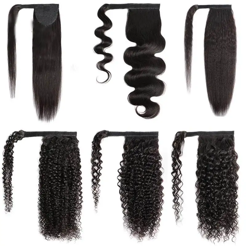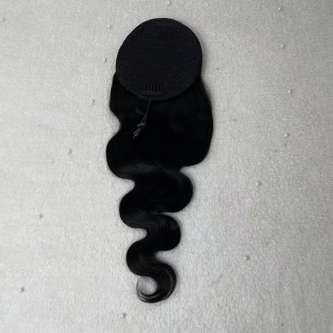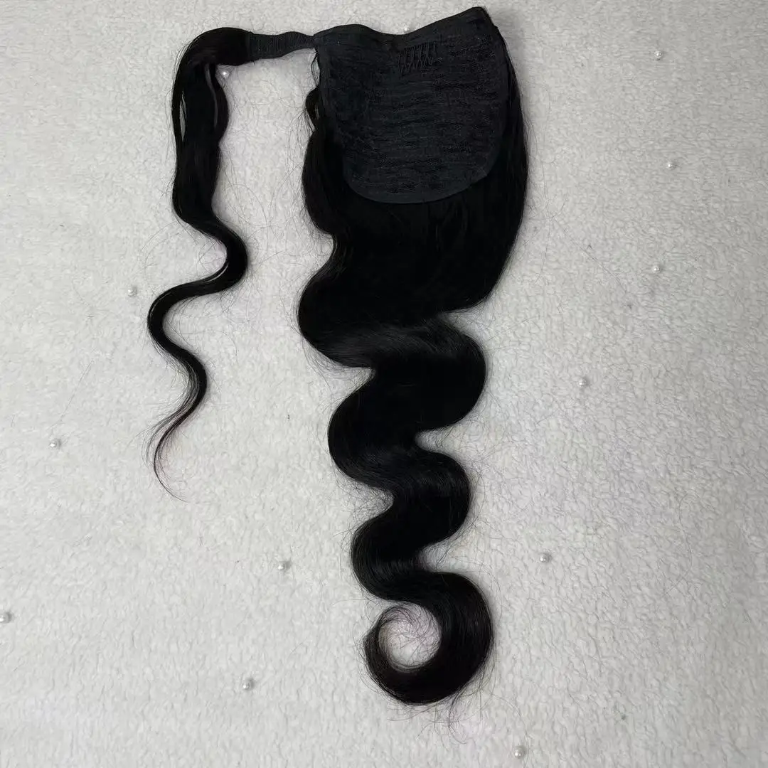 Natural Black Mink Brazilian Hair Ponytail Extenisons Long Body Wave Wrap Around Human Hair Ponytails