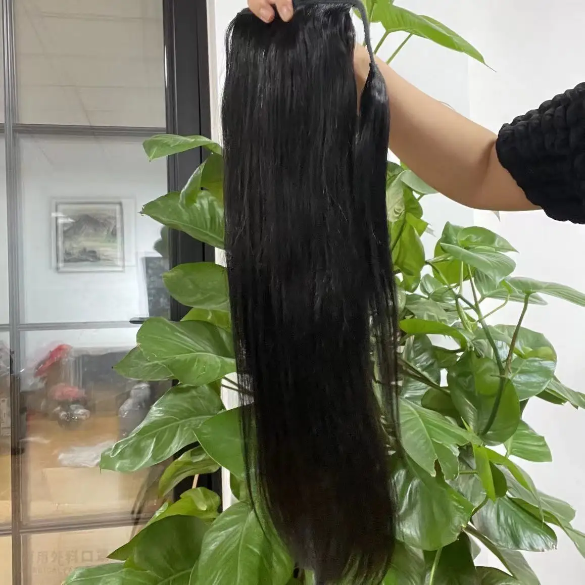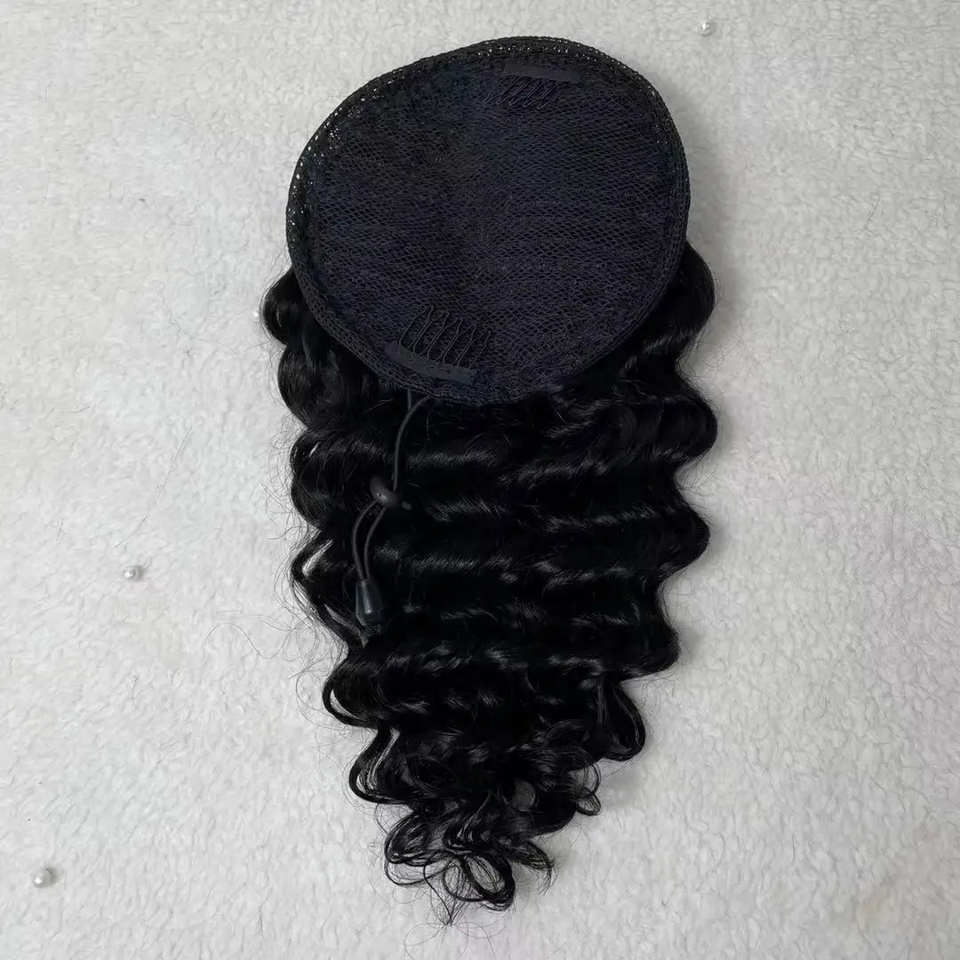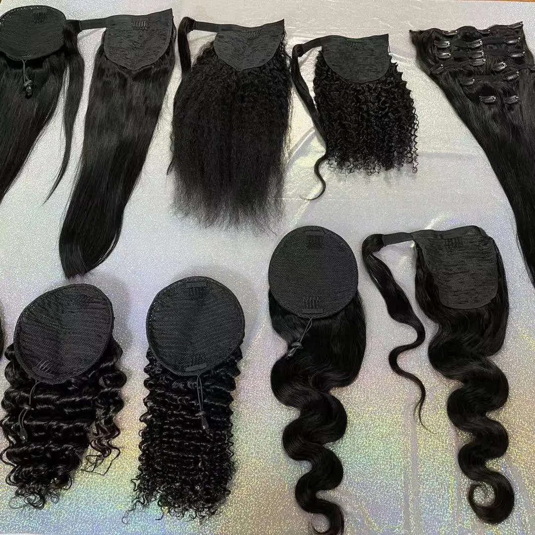 Natural Black Mink Brazilian Hair Ponytail Extenisons Long Body Wave Wrap Around Human Hair Ponytails