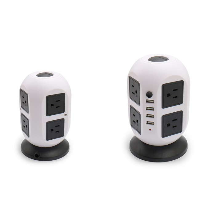 New 8 Outlet 4 USB Output Vertical Tower Outlet Smart Charger Surge Protector Power Strip