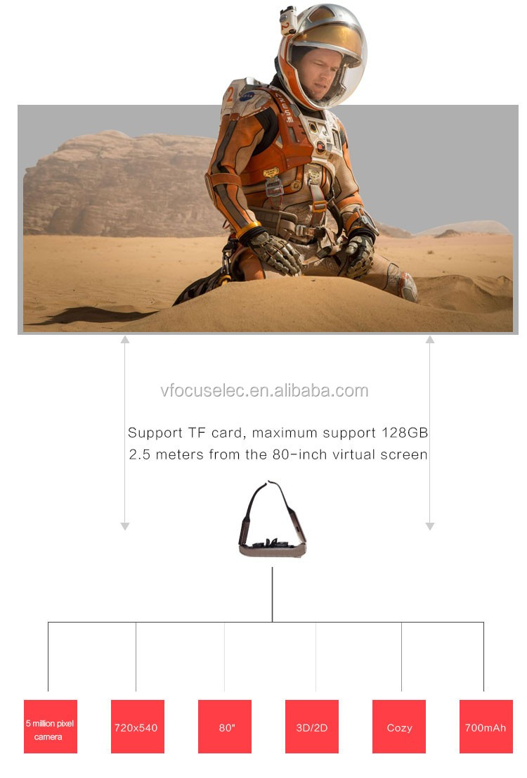 | Battery: | 1800mAH, video playback for 4 hours | Virtual screen size: | > 80" |
