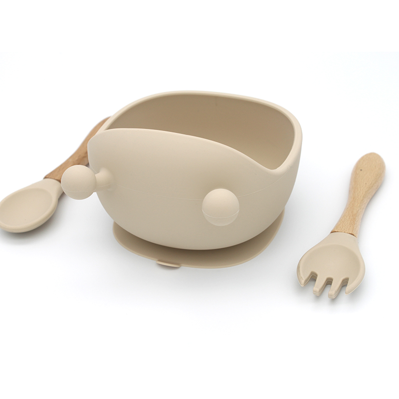 New Arrival Low MOQ Customized logo strong Suction Base one-piece Bear Shape kids silicone baby feeding set