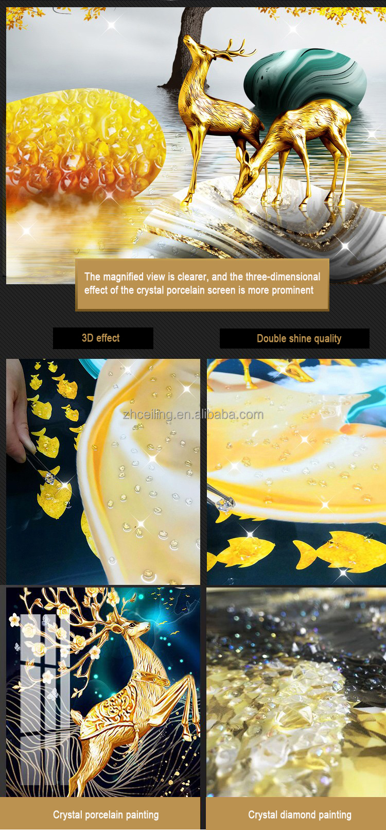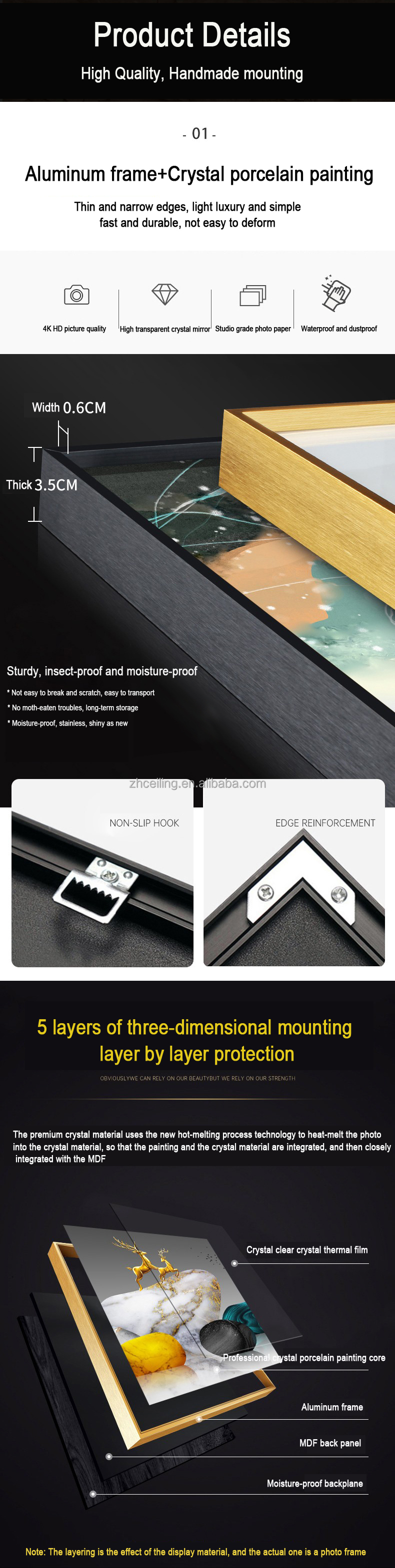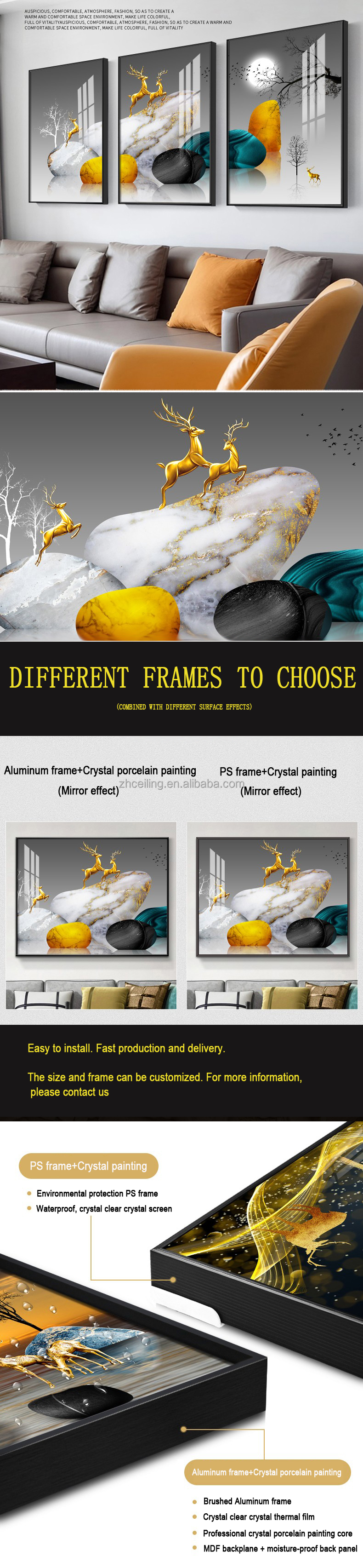 Material: aluminum frame or PS frame + crystal porcelain printing