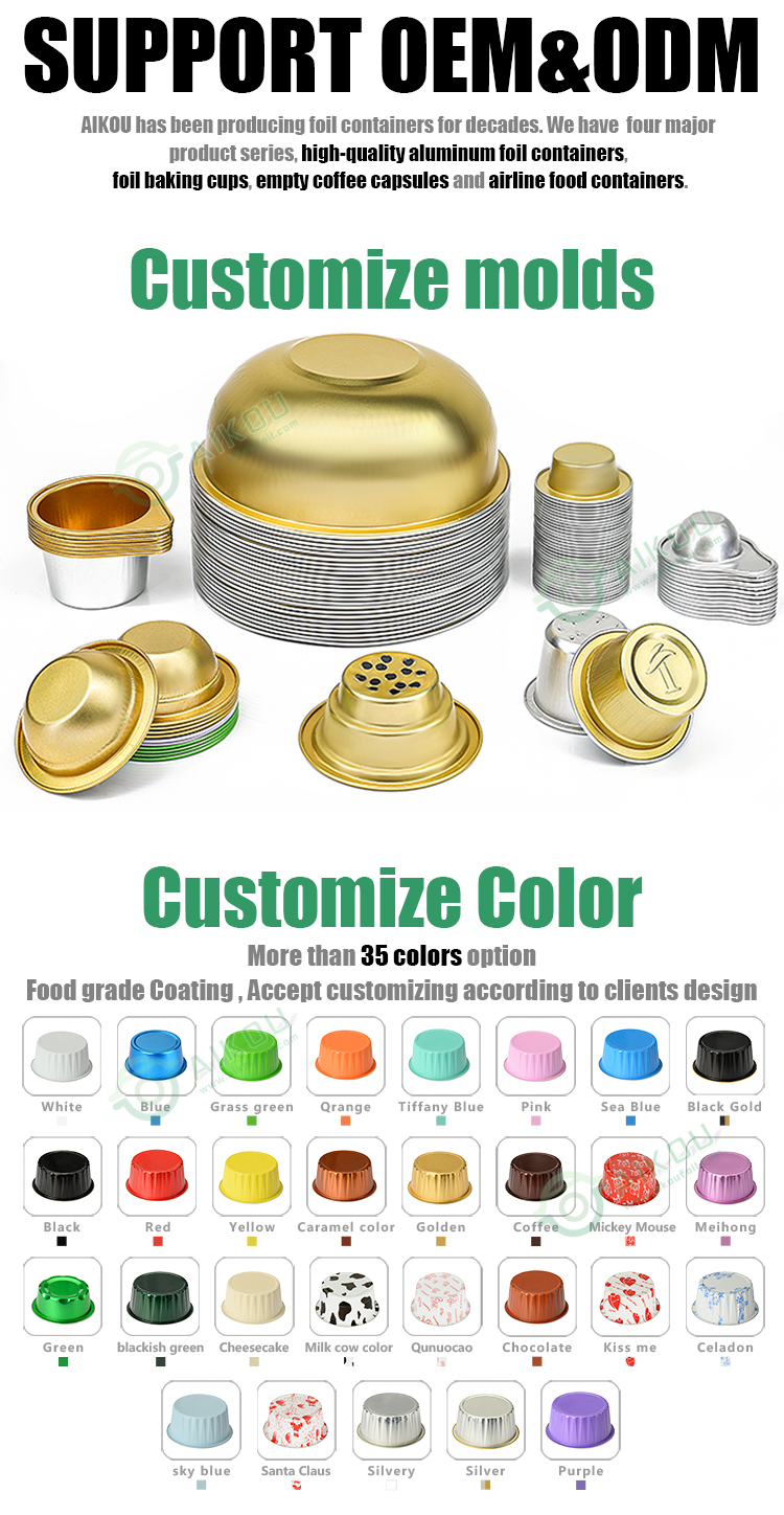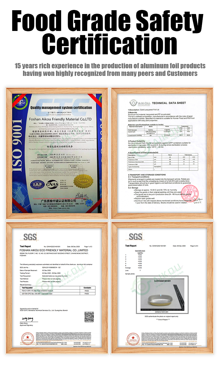 1. Disposable aluminum foil material 2. Environmental protection, no pollution, safety, health, environmental protection, recyclable. 3. Various designs and colors 4. Microwave safe 5. High temperature does not fade 6. Acceptable temperature -40°C to 280°C |